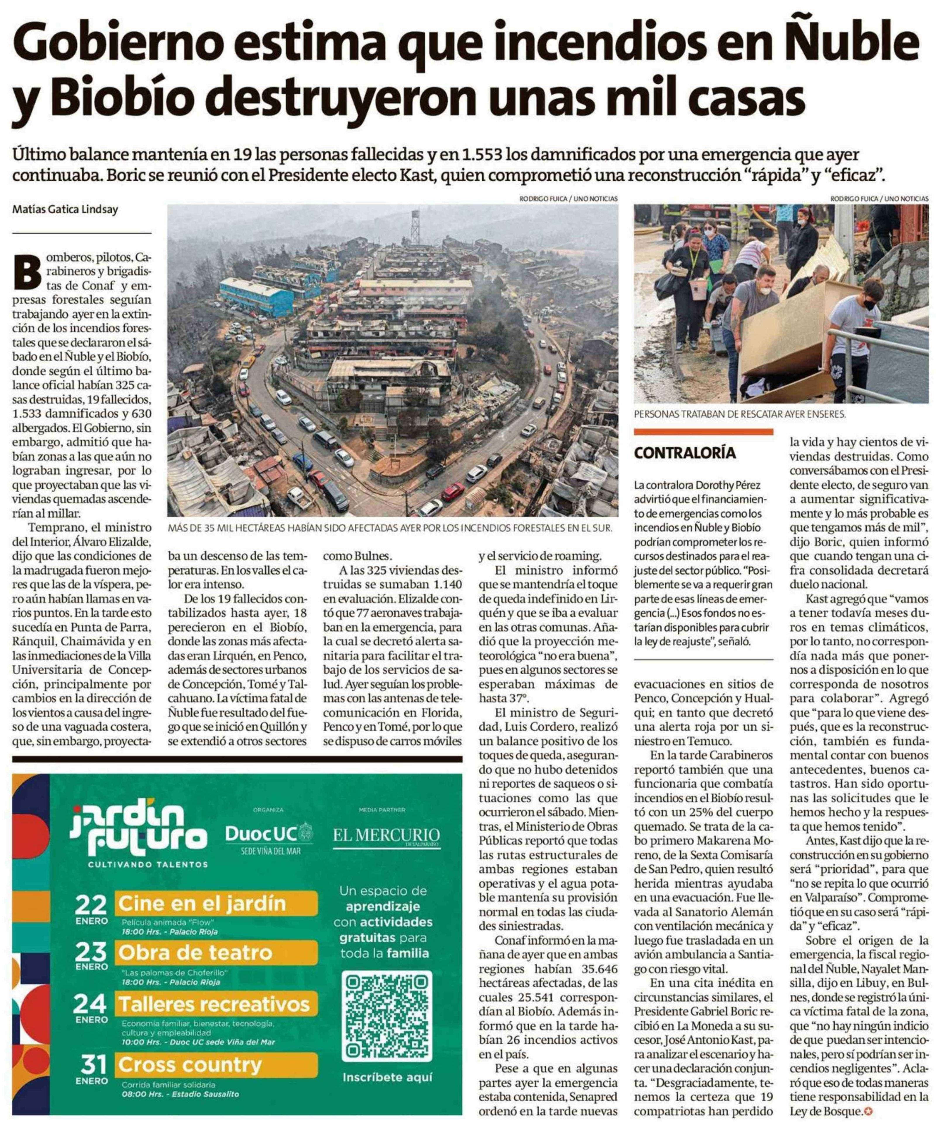 Gobierno estima que incendios en Ñuble y Biobio destruyeron unas mil casas