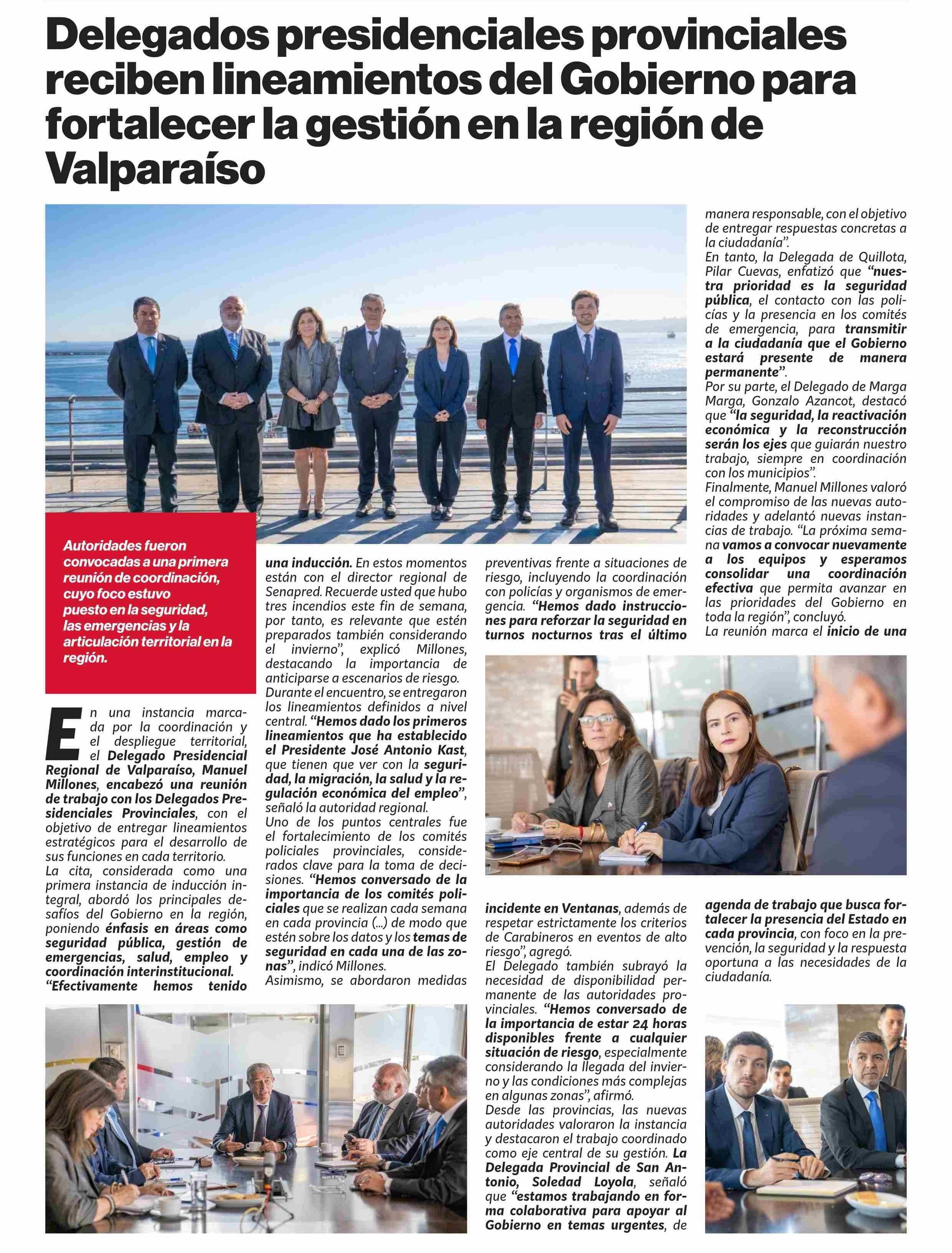 Delegados presidenciales provinciales reciben lineamientos del Gobierno para fortalecer la gestión en la región de Valparaíso
