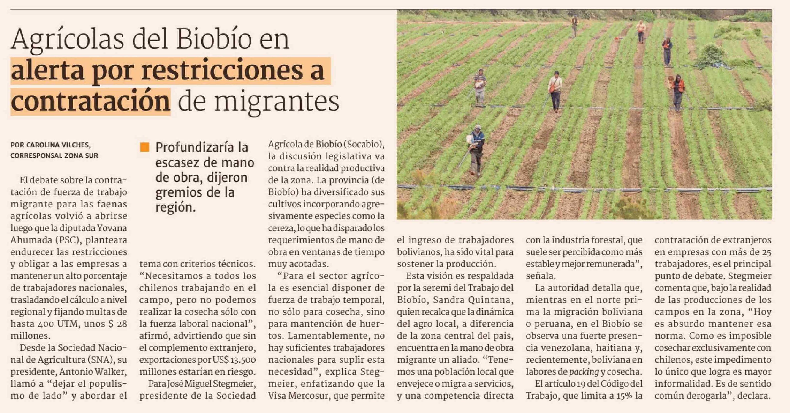Agrícolas del Biobío en alerta por restricciones a contratación de migrantes