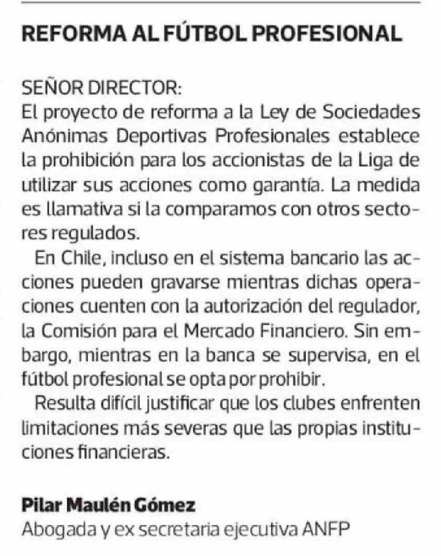 Cartas: REFORMA AL FÚTBOL PROFESIONAL