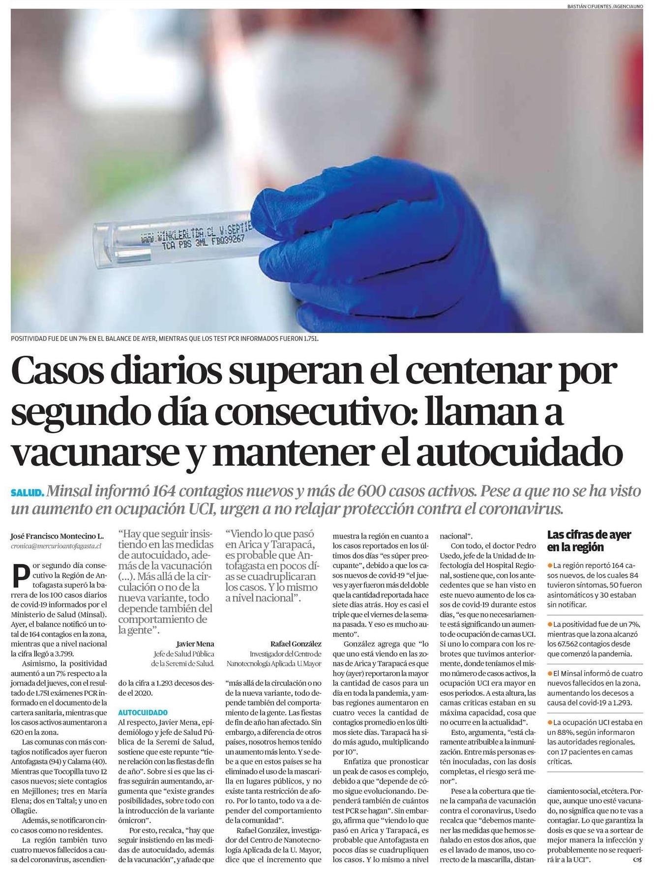 Casos diarios superan el centenar por segundo día consecutivo: llaman a vacunarse y mantener el autocuidado
