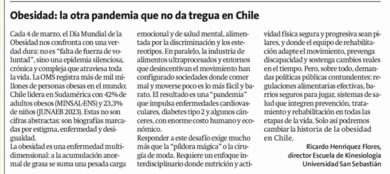 Cartas: Obesidad: la otra pandemia que no da tregua en Chile