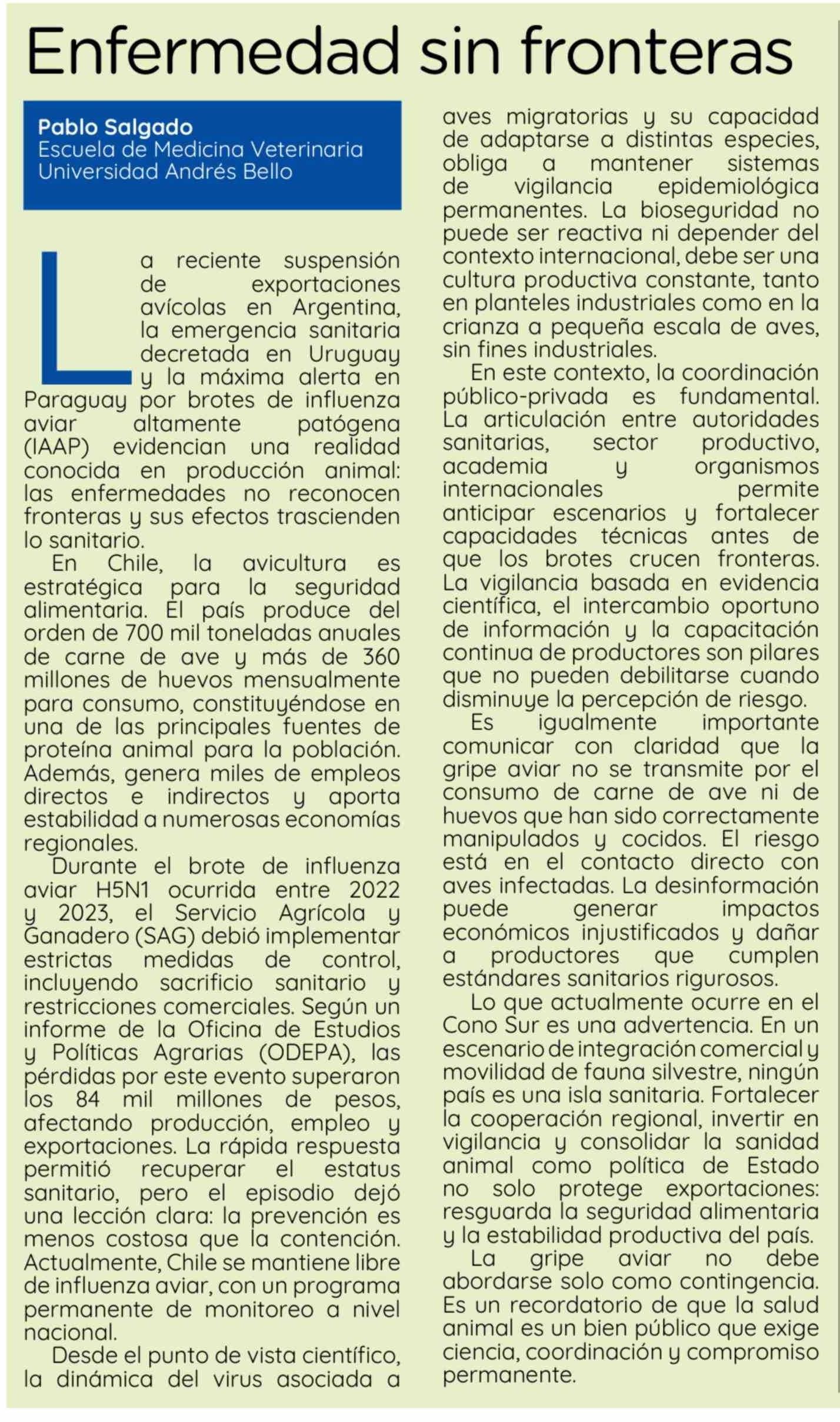 Columnas de Opinión: Enfermedad sin fronteras