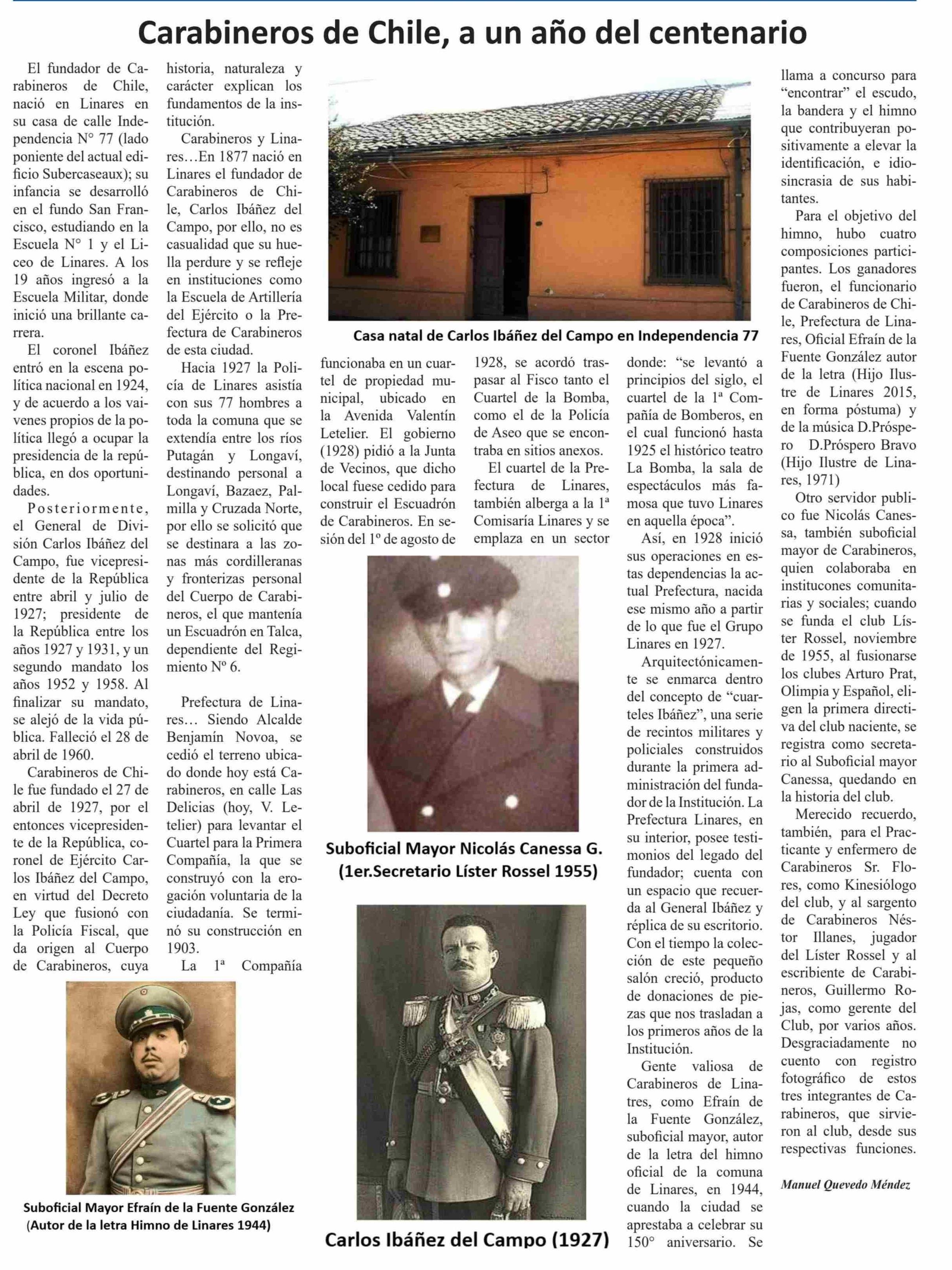 Carabineros de Chile, a un año del centenario