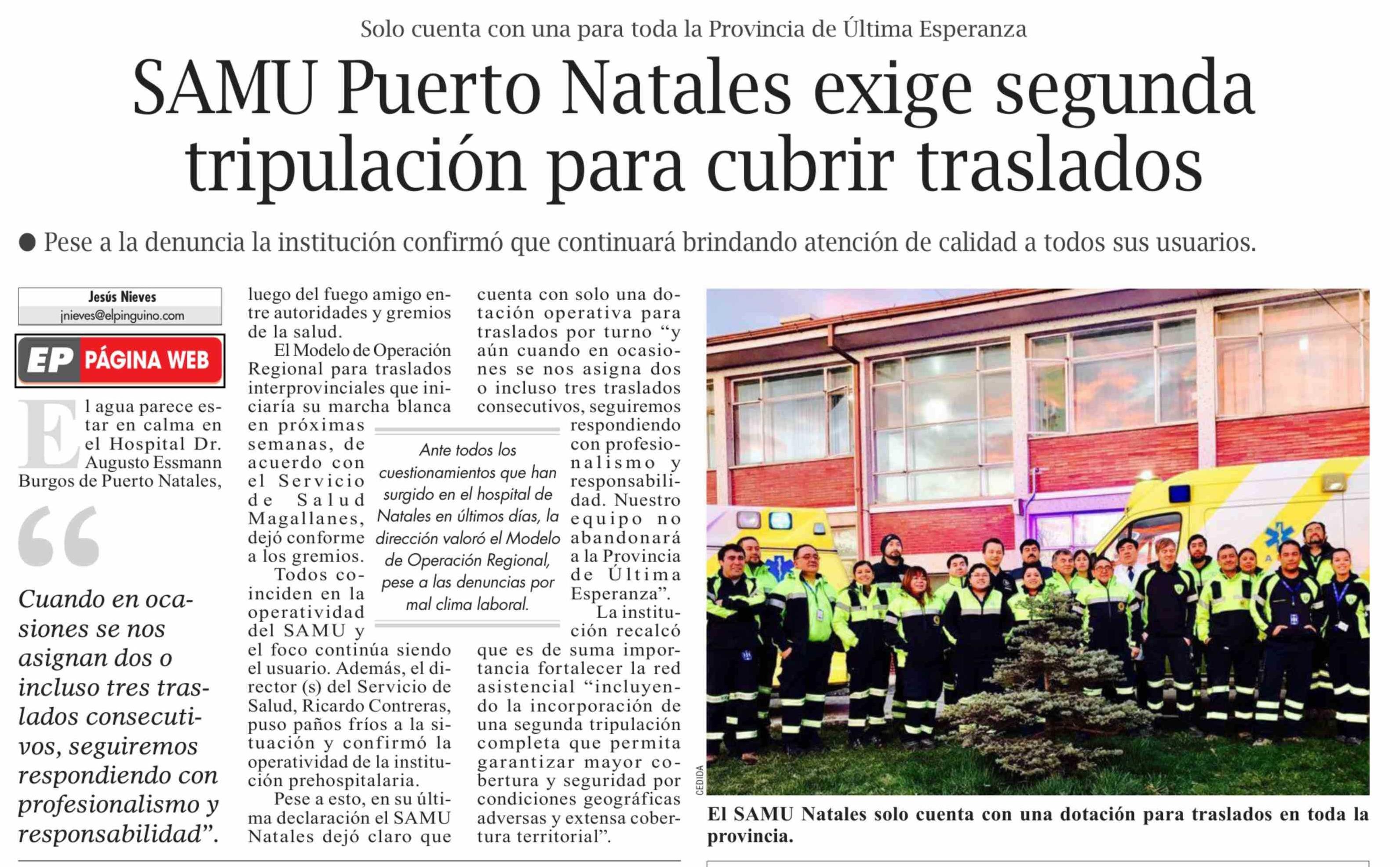 SAMU Puerto Natales exige segunda tripulación para cubrir traslados