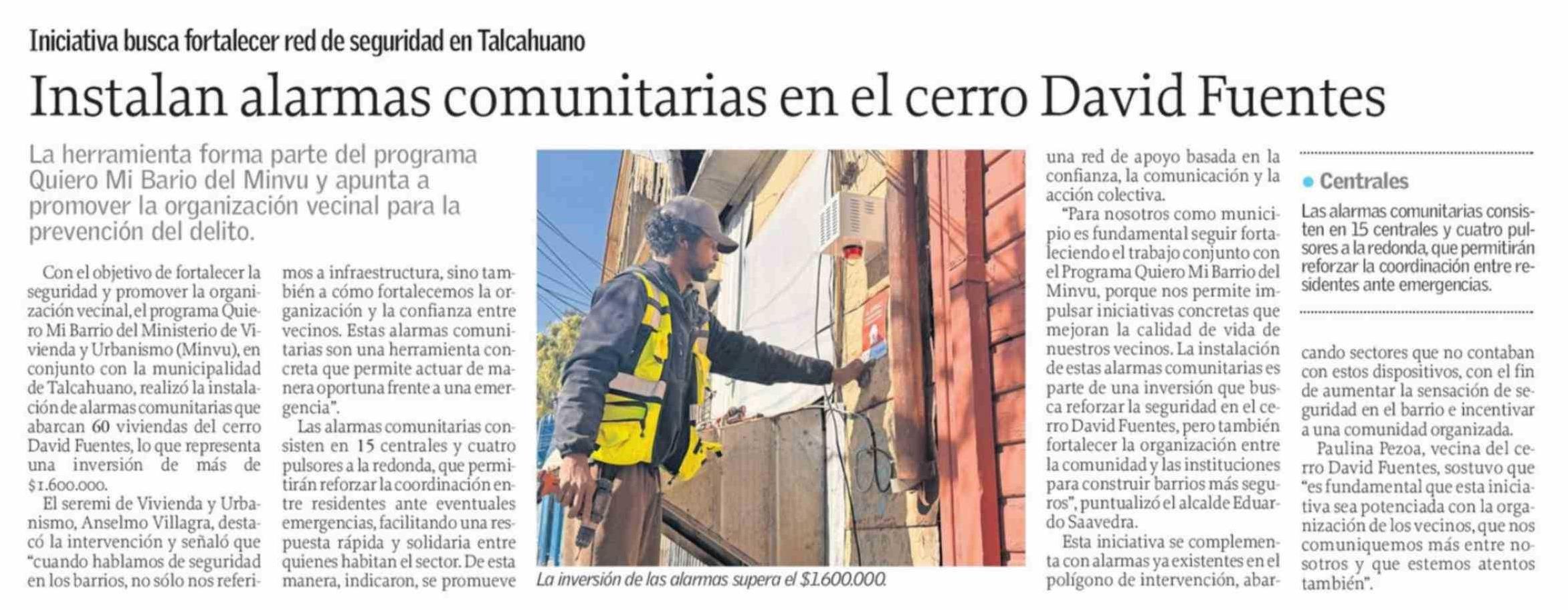 Instalan alarmas comunitarias en el cerro David Fuentes