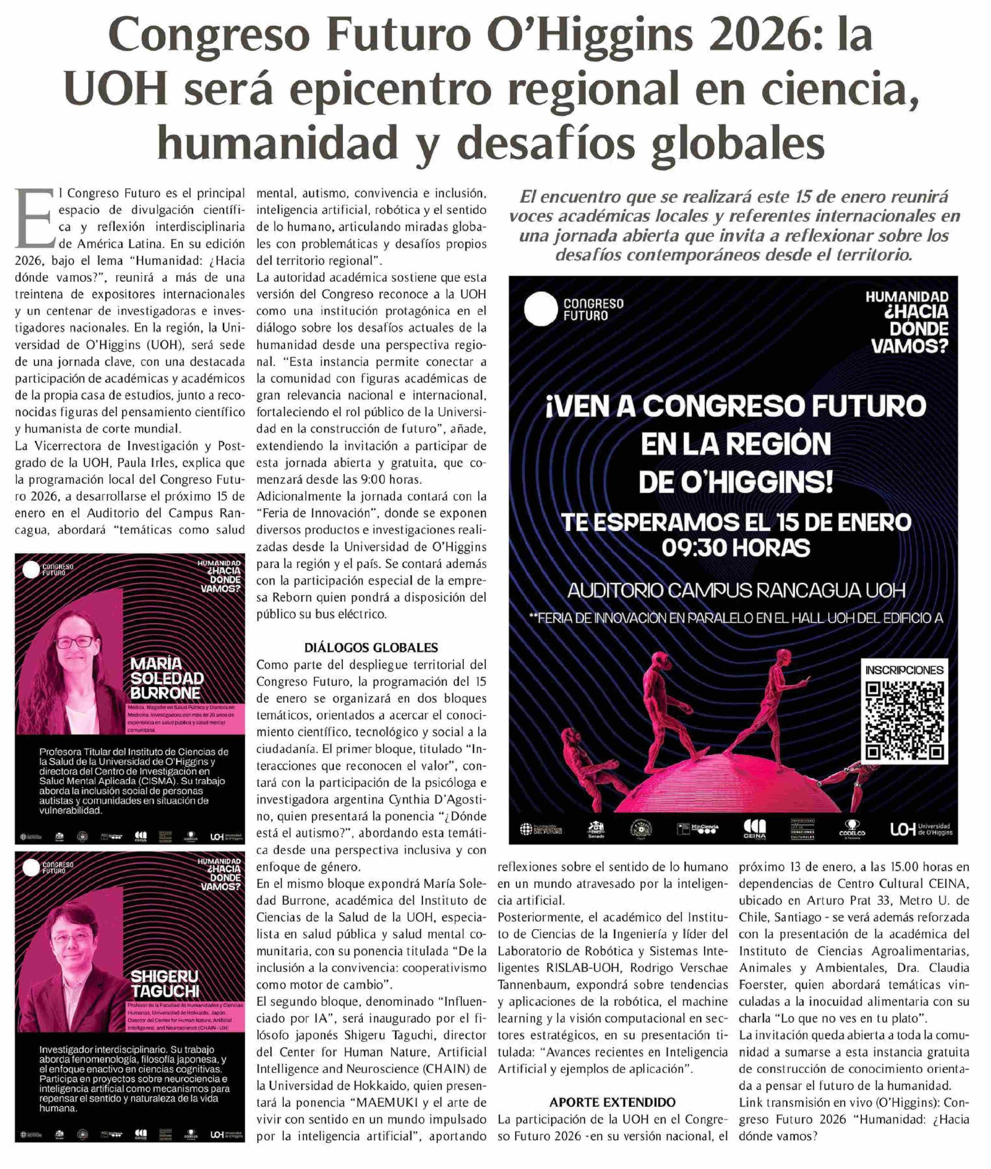 Congreso Futuro O'Higgins 2026: la UOH será epicentro regional en ciencia, humanidad y desafíos globales