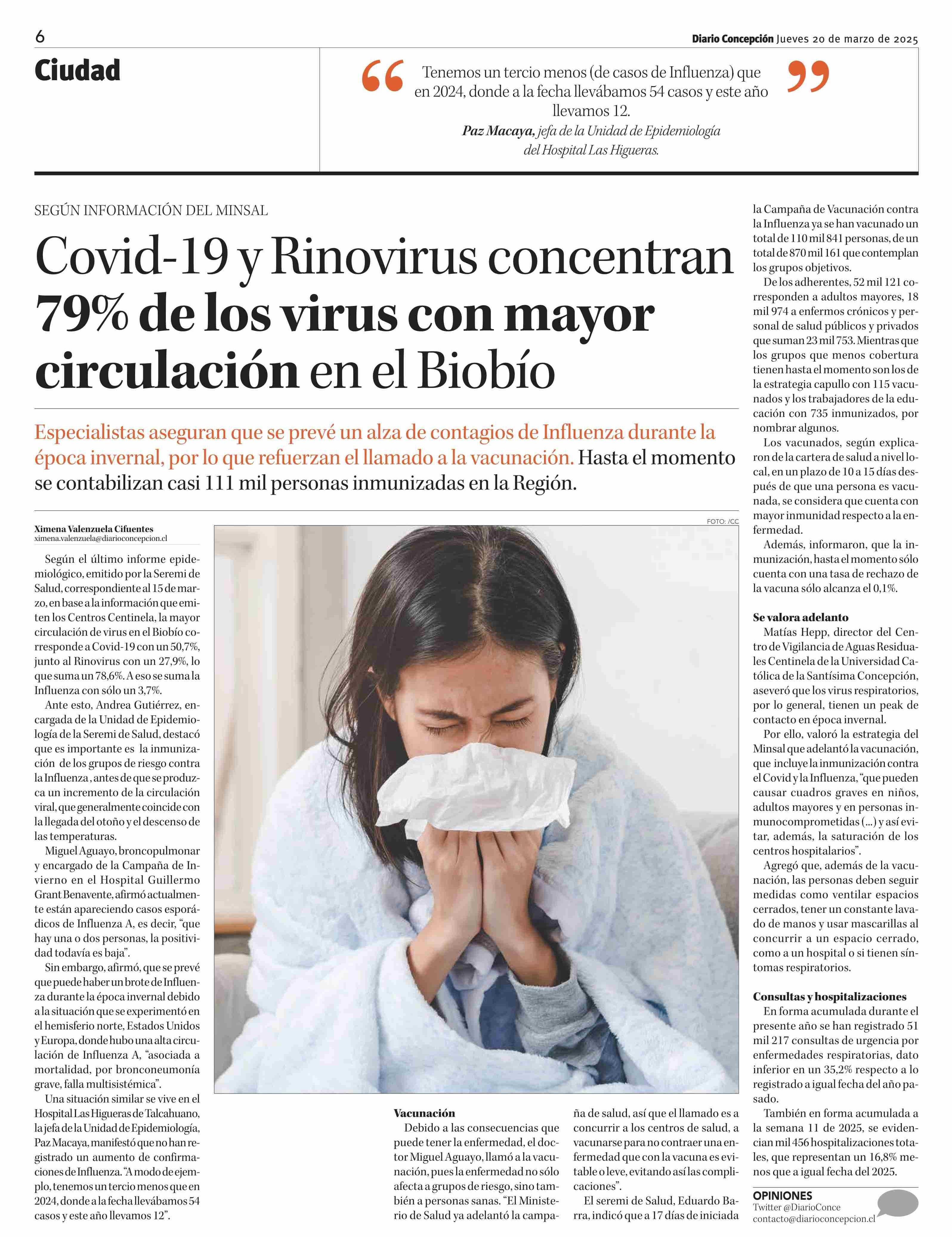 Covid-19 y Rinovirus concentran 79% de los virus con mayor circulación en el Biobío