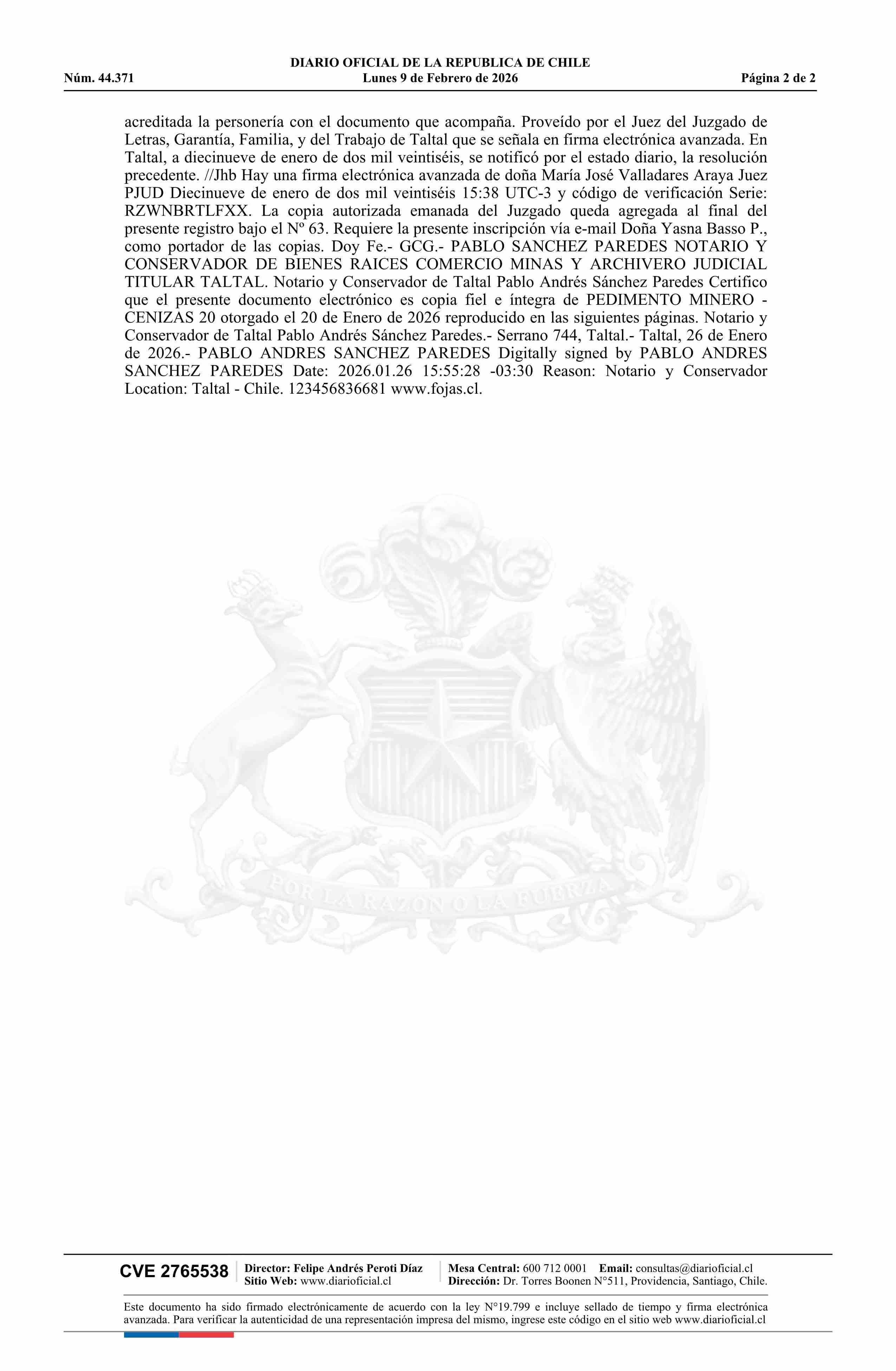DIARIO OFICIAL CHILE - BOLETÍN OFICIAL DE MINERÍA (DIARIO OFICIAL CHILE – BOM – PEDIMENTOS MINEROS)