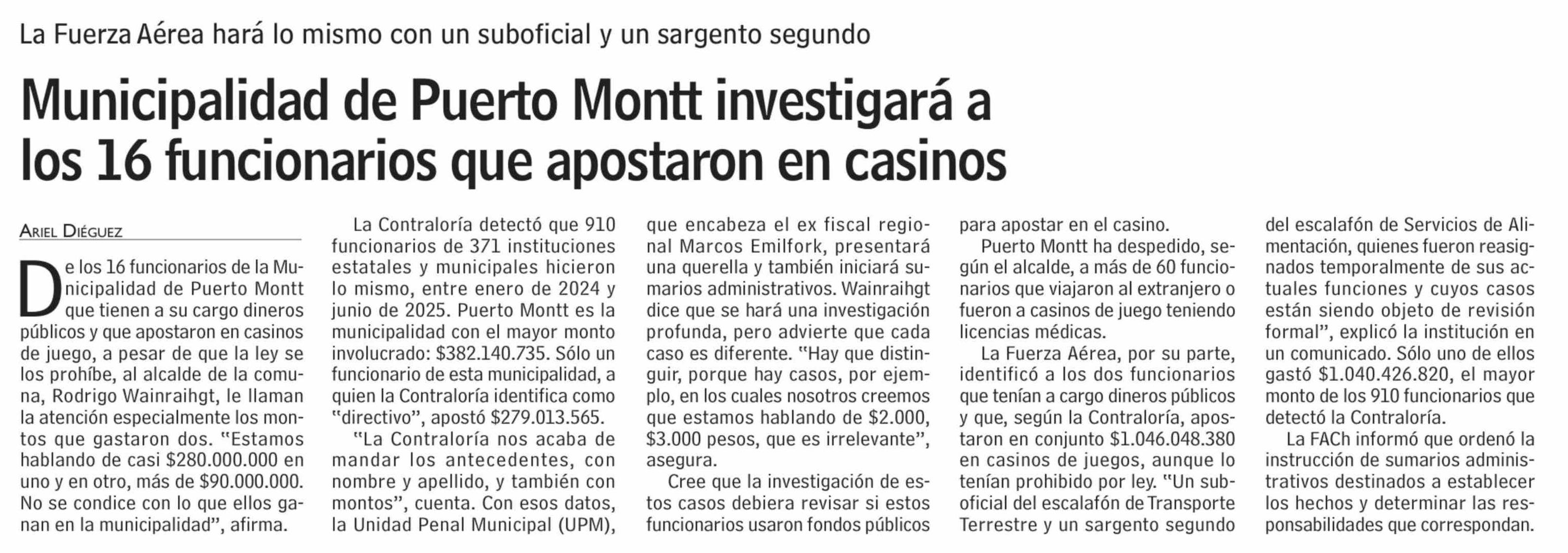 Municipalidad de Puerto Montt investigará a los 16 funcionarios que apostaron en casinos