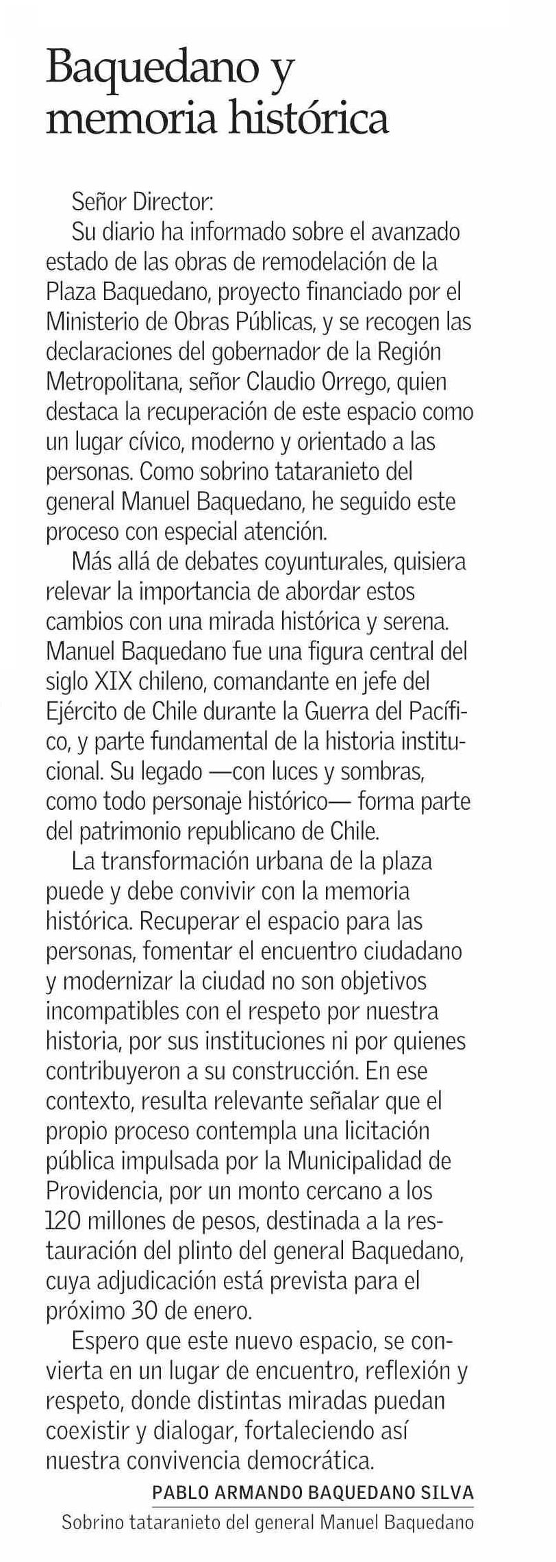 CARTAS: Baquedano y memoria histórica