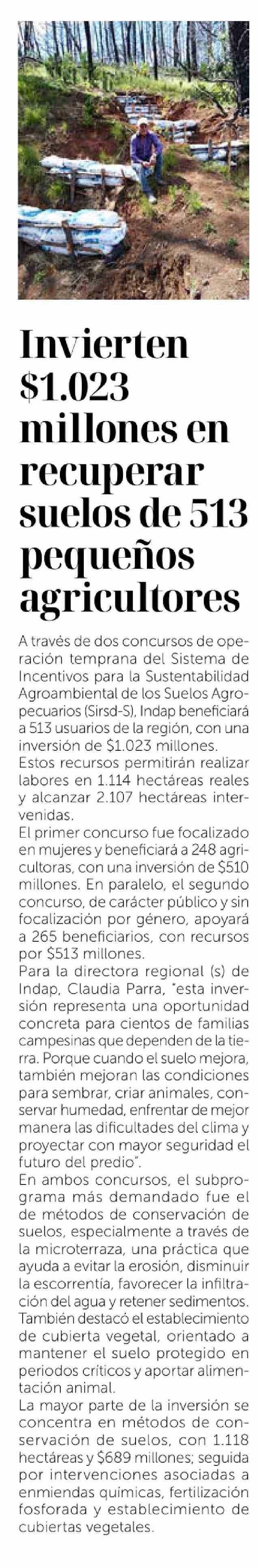 Título: Invierten $1.023 millones en recuperar suelos de 513 pequeños agricultores