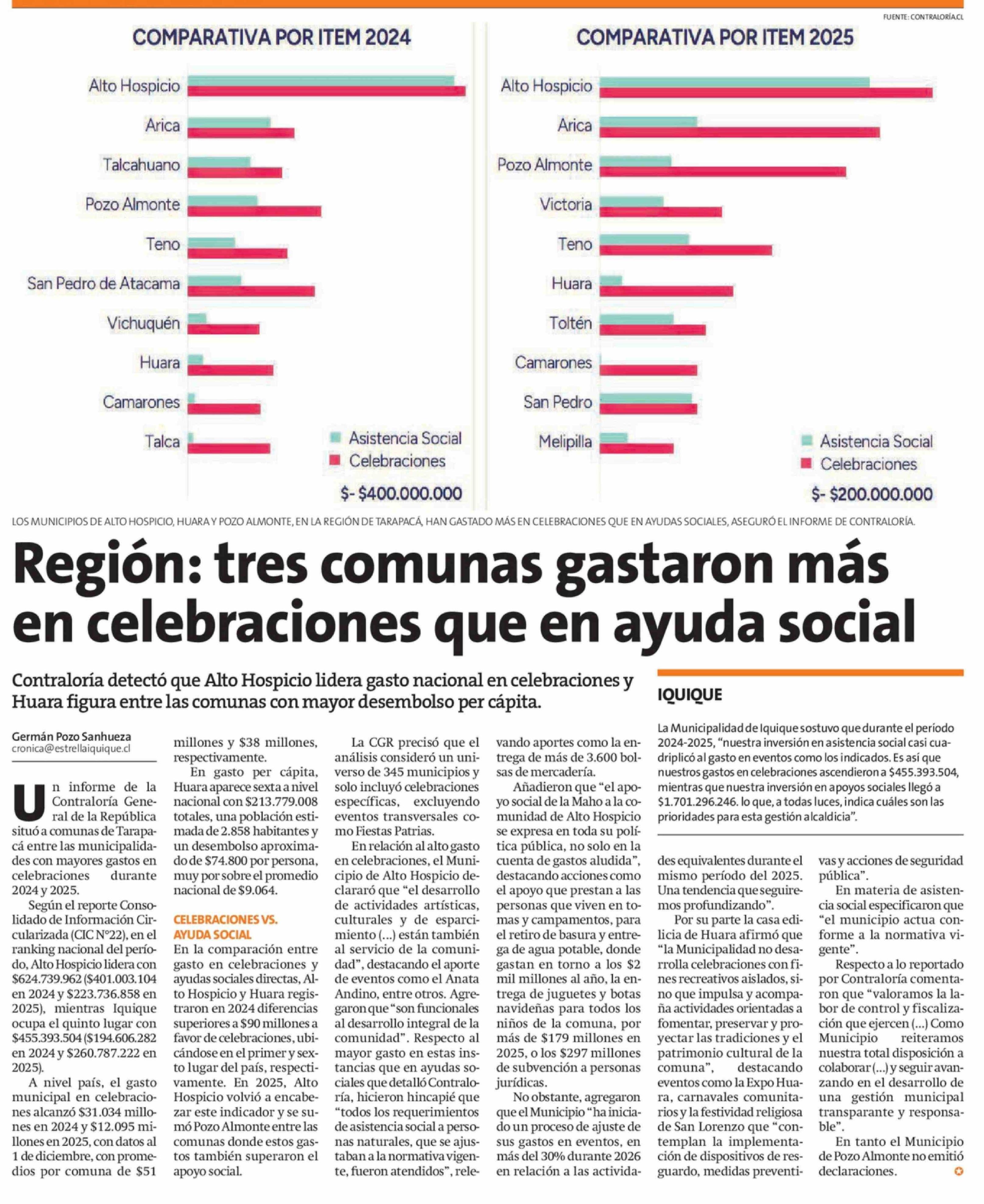 Región: tres comunas gastaron más en celebraciones que en ayuda social