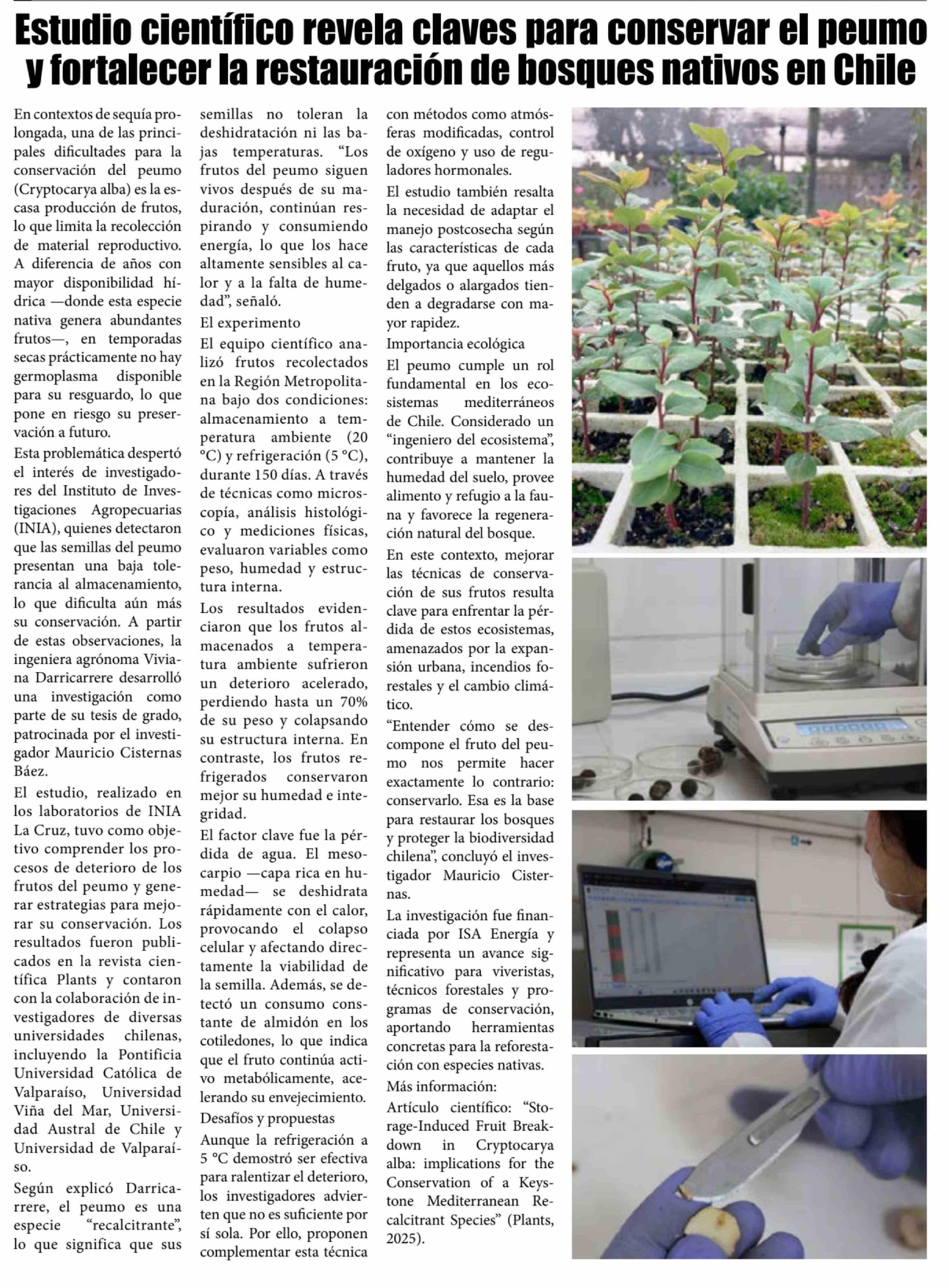 Título: Estudio científico revela claves para conservar el peumo y fortalecer la restauración de bosques nativos en Chile