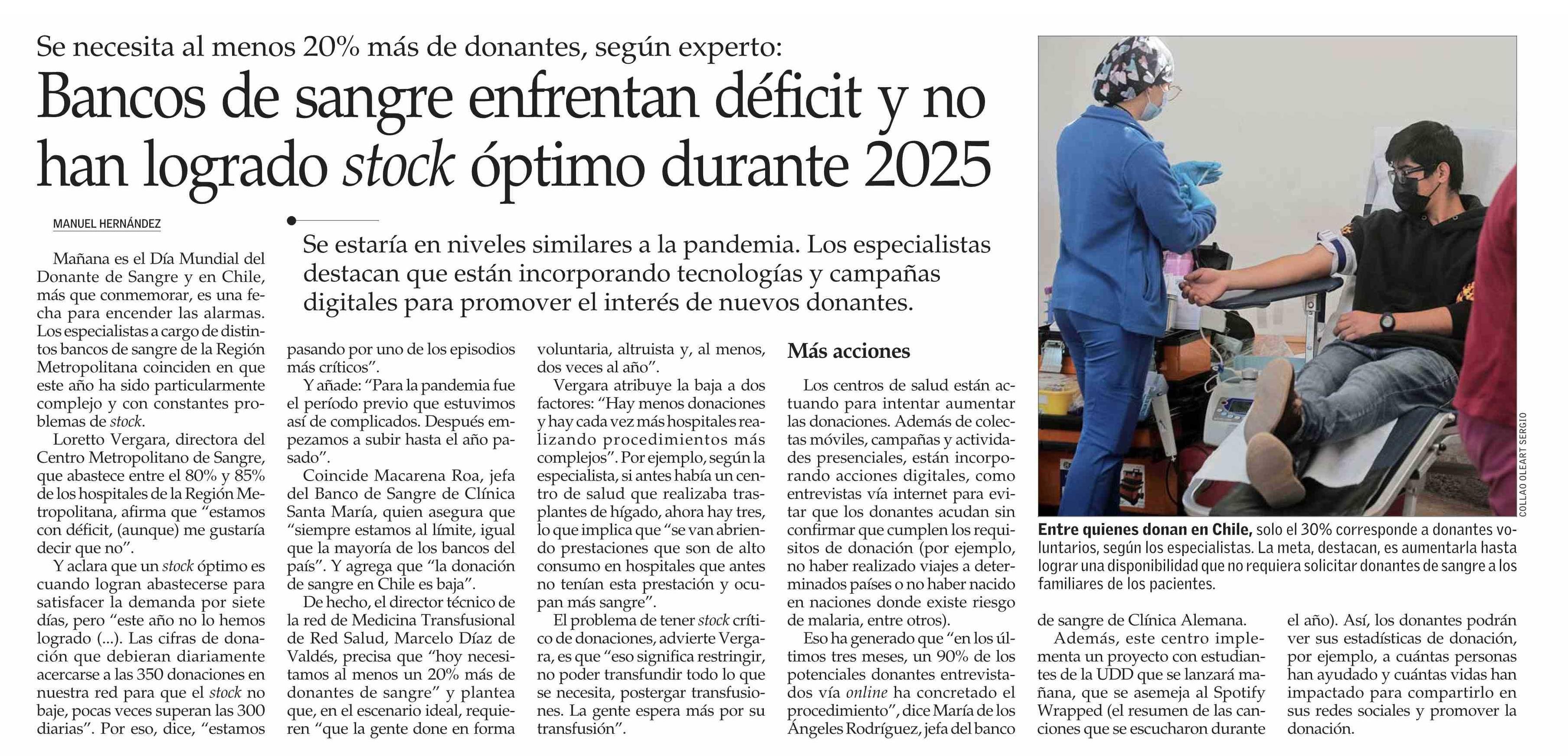 Bancos de sangre enfrentan déficit y no han logrado stock óptimo durante 2025
