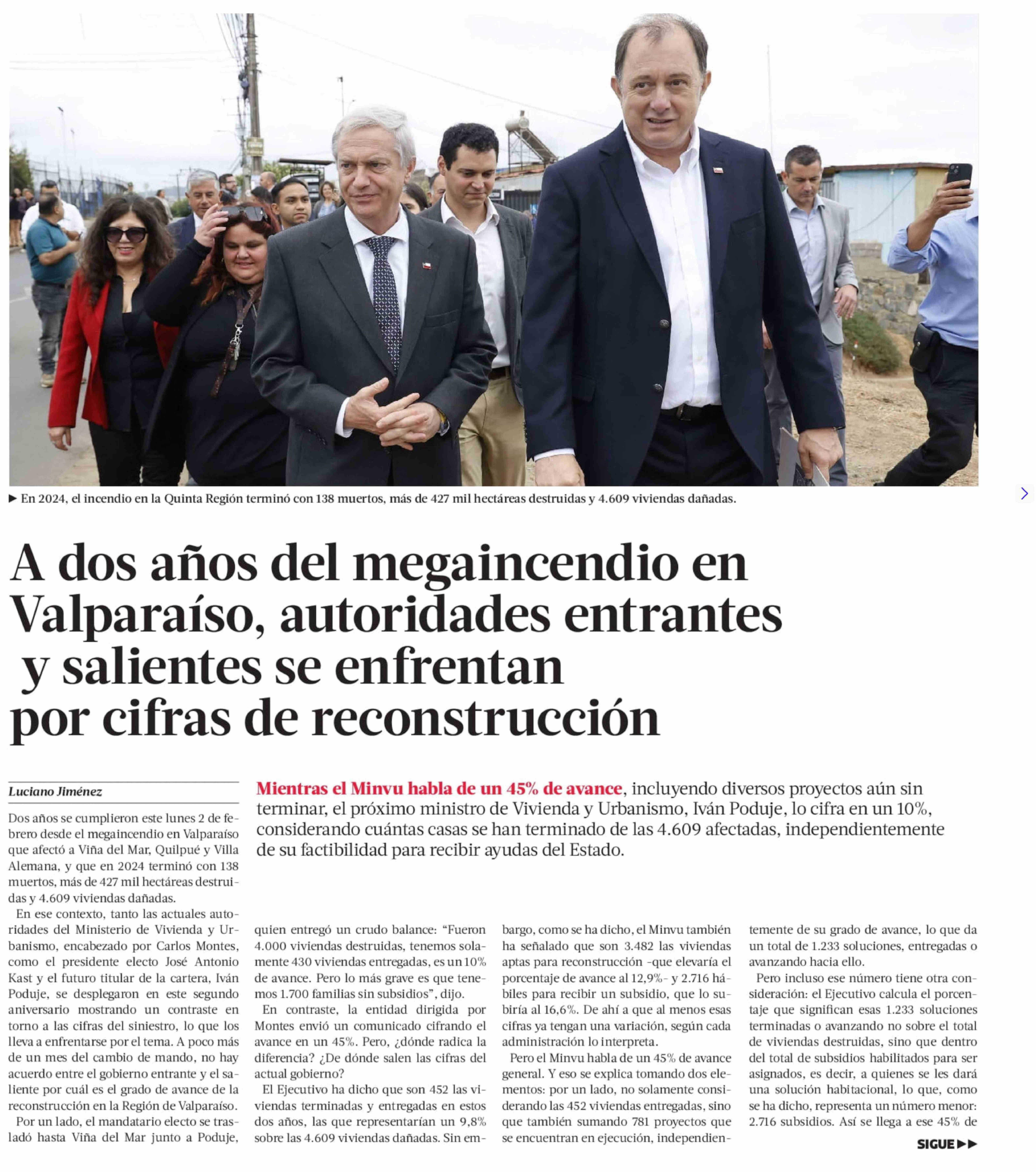 A dos años del megaincendio en Valparaíso, autoridades entrantes y salientes se enfrentan por cifras de reconstrucción