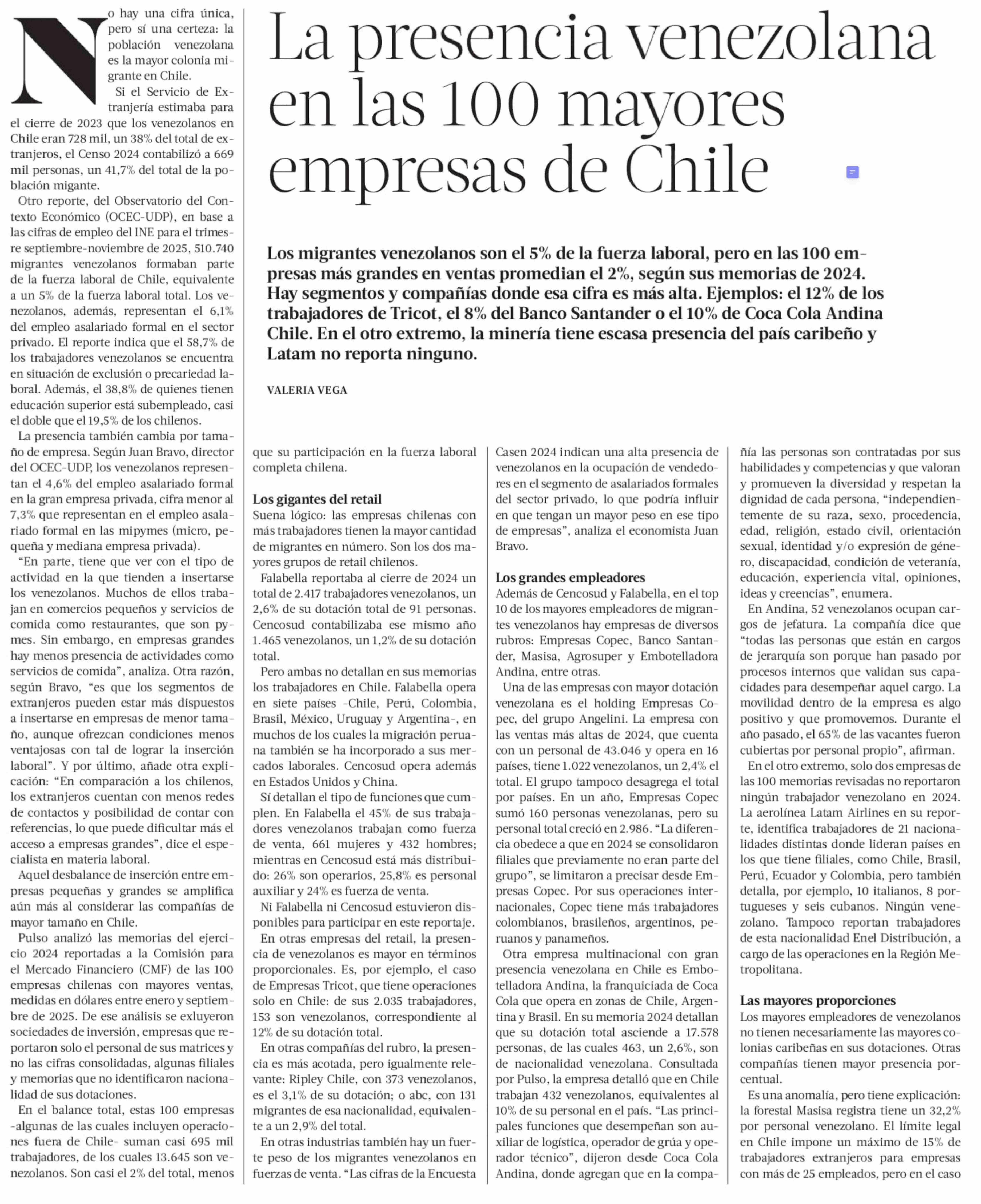 La presencia venezolana en las 100 mayores empresas de Chile