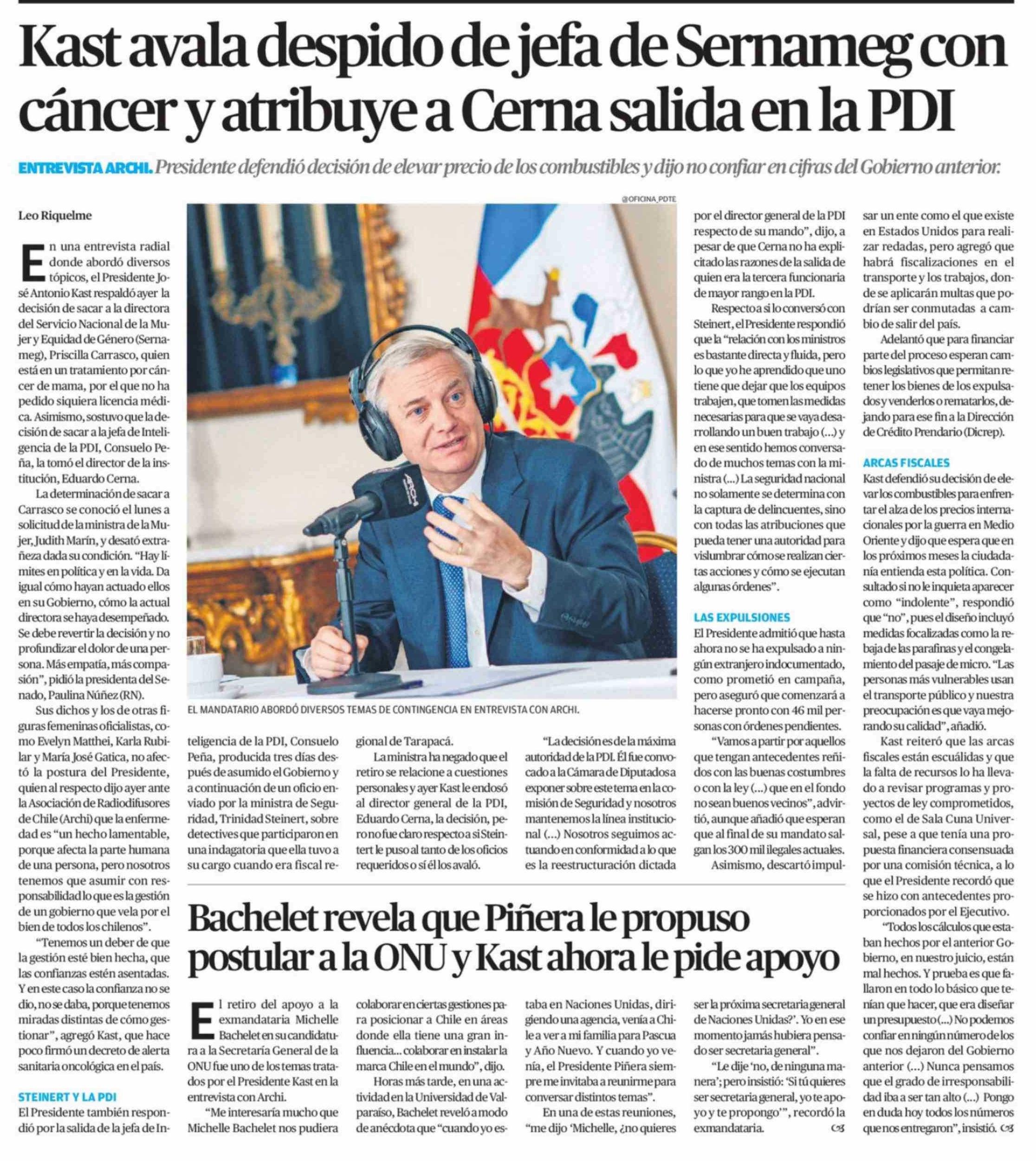 Kast avala despido de jefa de Sernameg con cáncer y atribuye a Cerna salida en la PDI