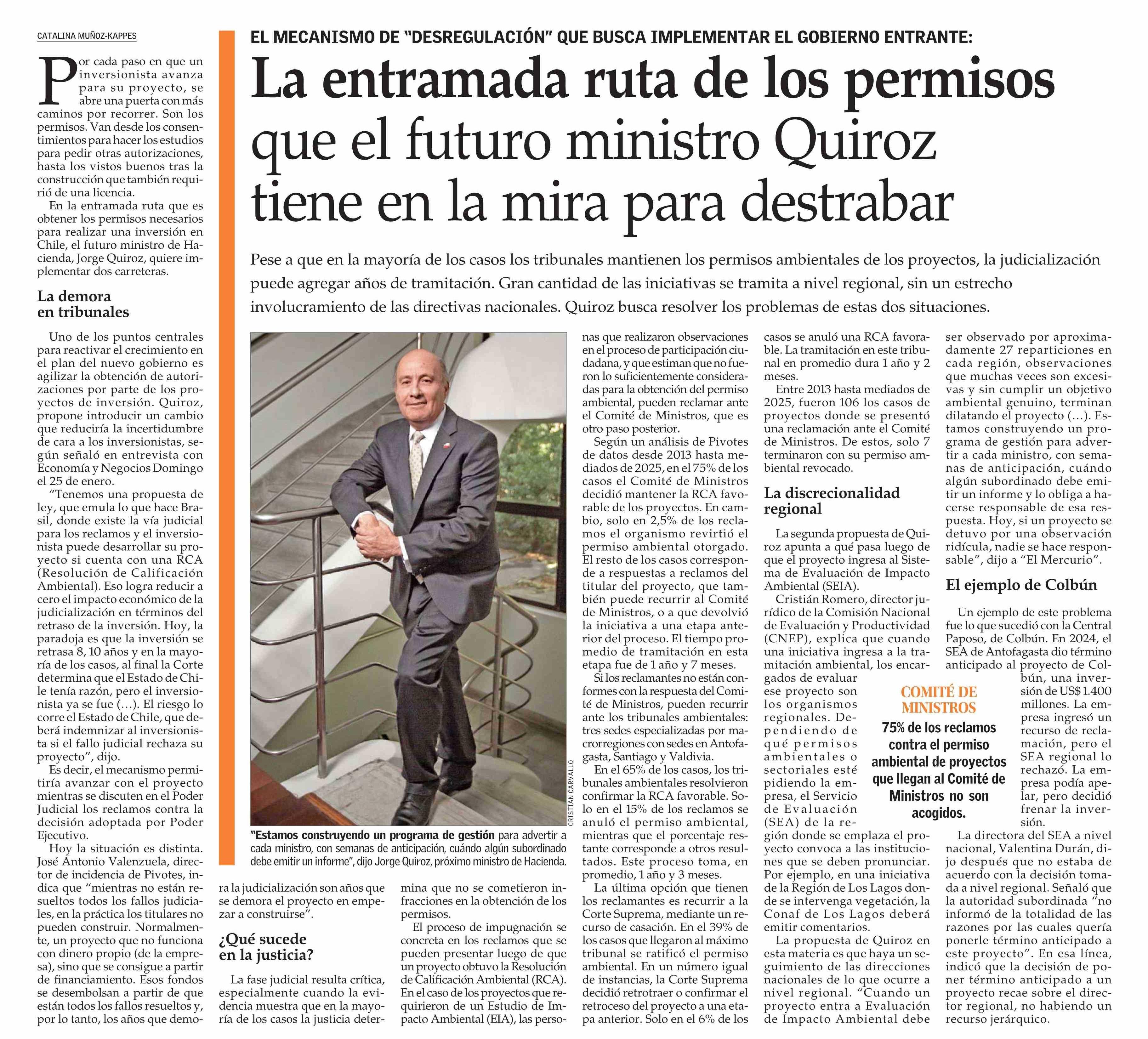 La entramada ruta de los permisos que el futuro ministro Quiroz tiene en la mira para destrabar