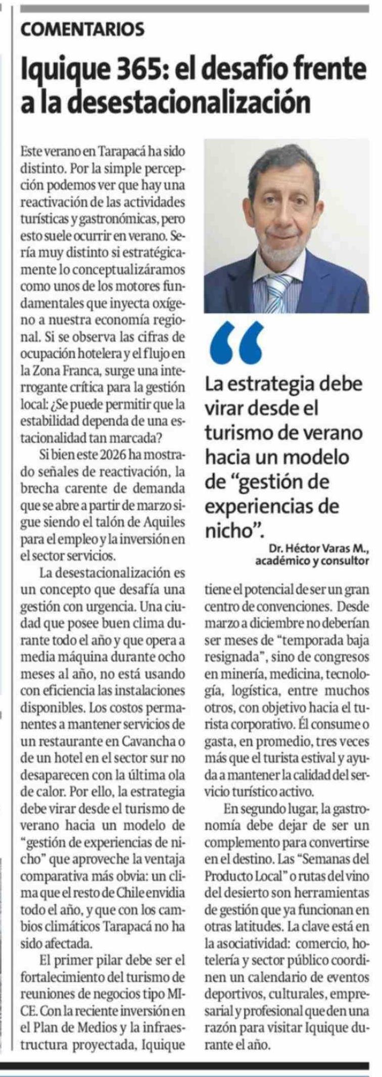 Columnas de Opinión: Iquique 365: el desafio frente a la desestacionalización