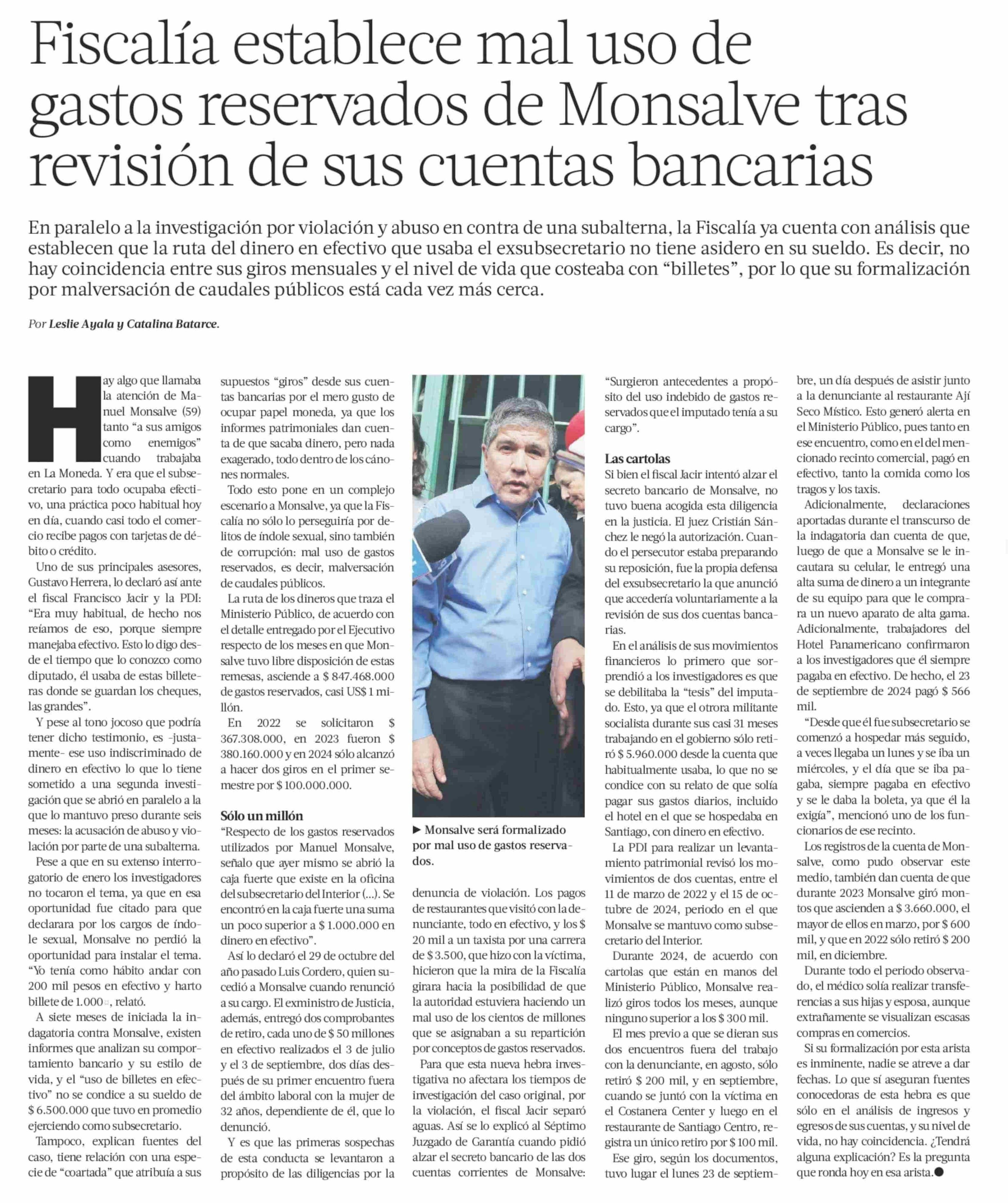 Fiscalía establece mal uso de gastos reservados de Monsalve tras revisión de sus cuentas bancarias