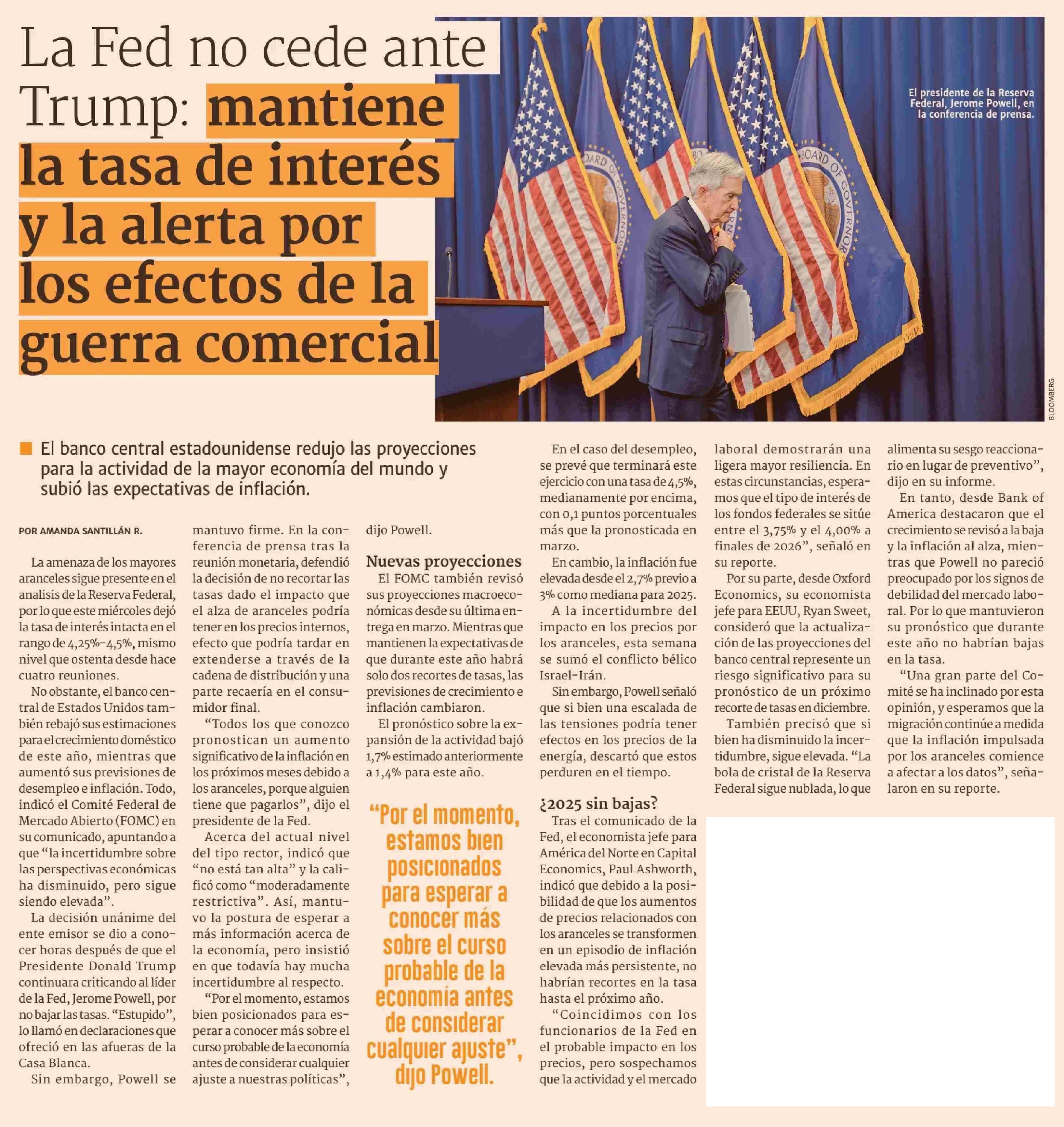 La Fed no cede ante Trump: mantiene la tasa de interés y la alerta por los efectos de la guerra comercia