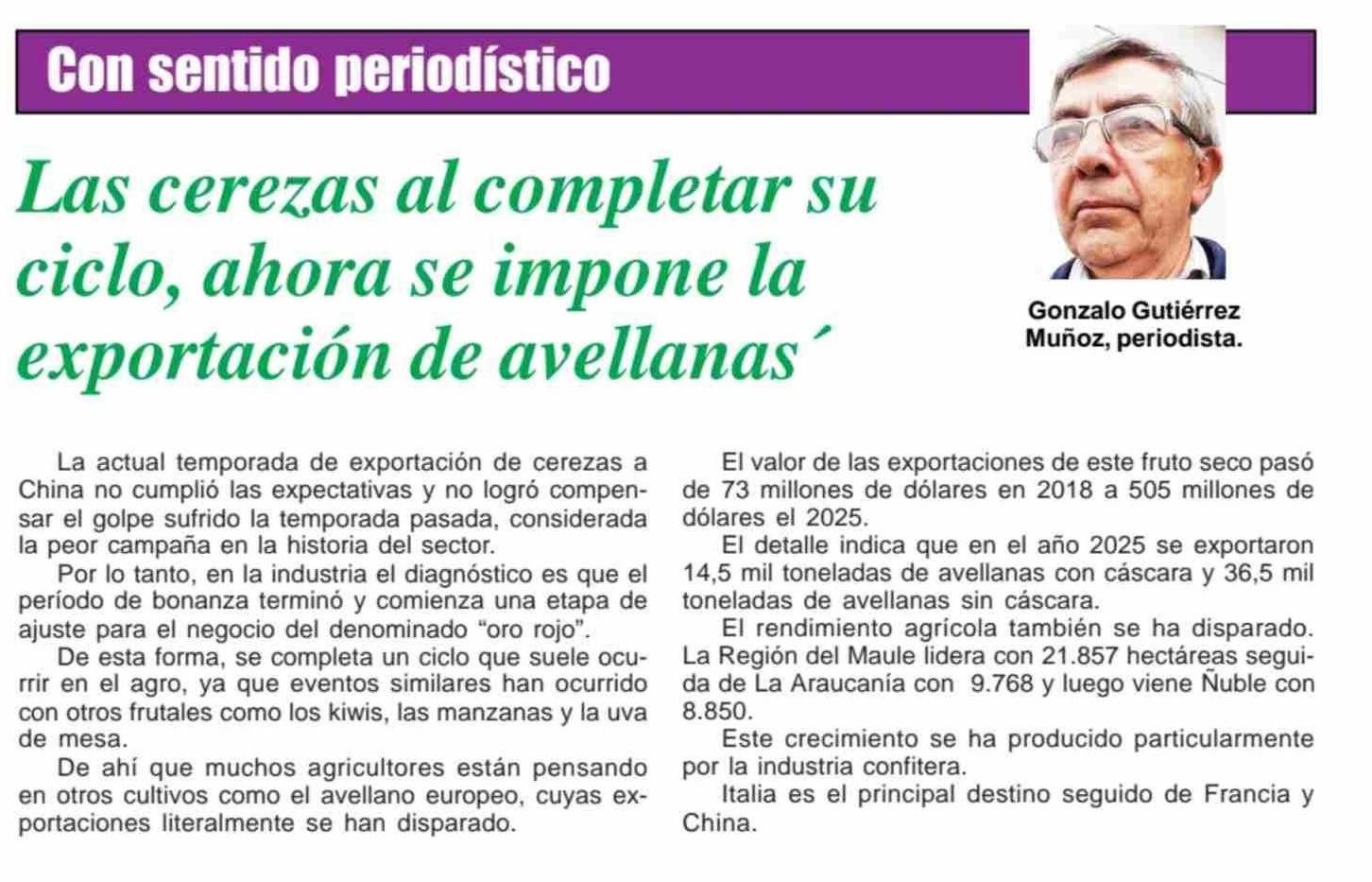 COLUMNAS DE OPINIÓN: Las cerezas al completar su ciclo ahora se impone la de avellanas’
