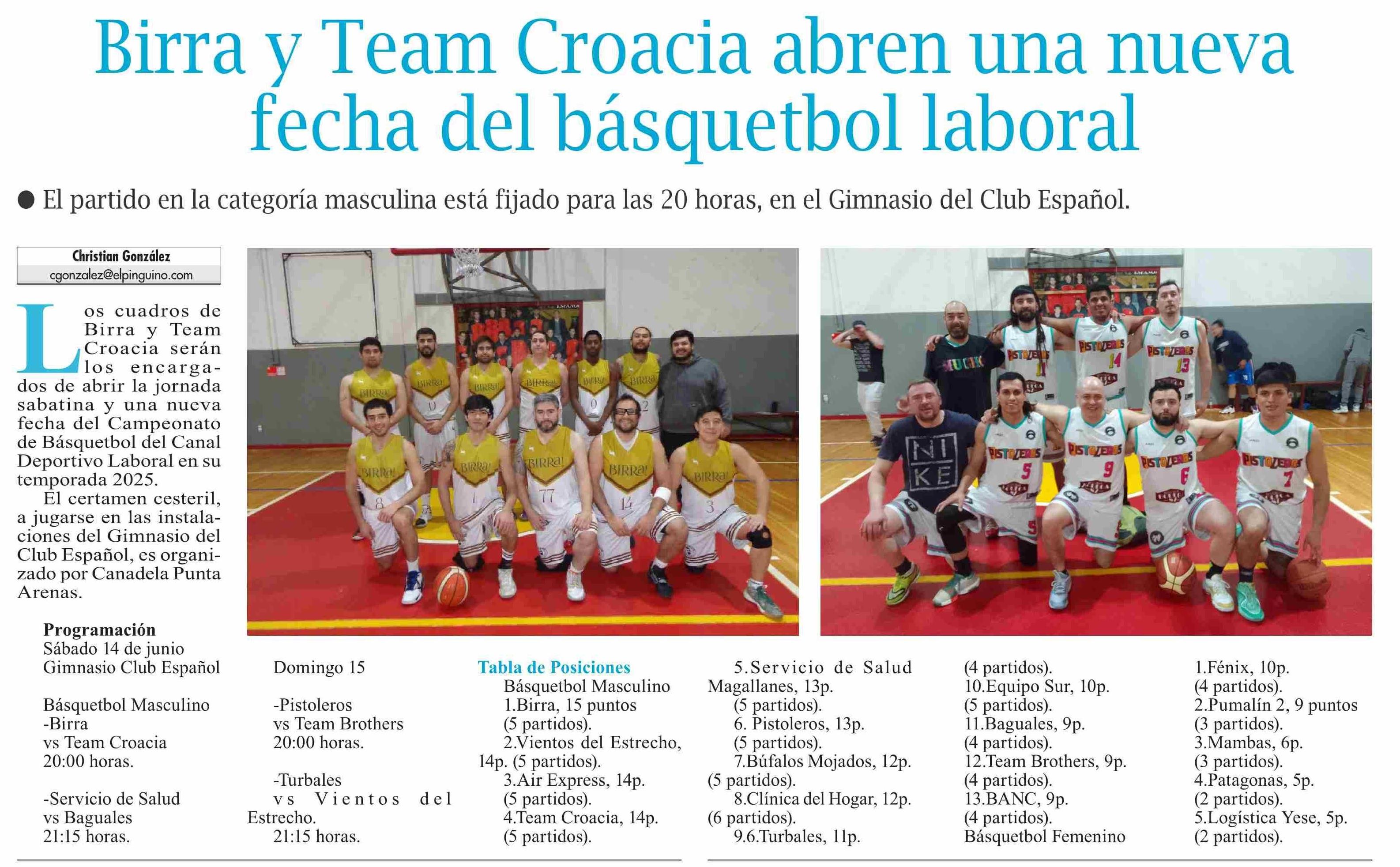 Birra y Team Croacia abren una nueva fecha del básquetbol laboral