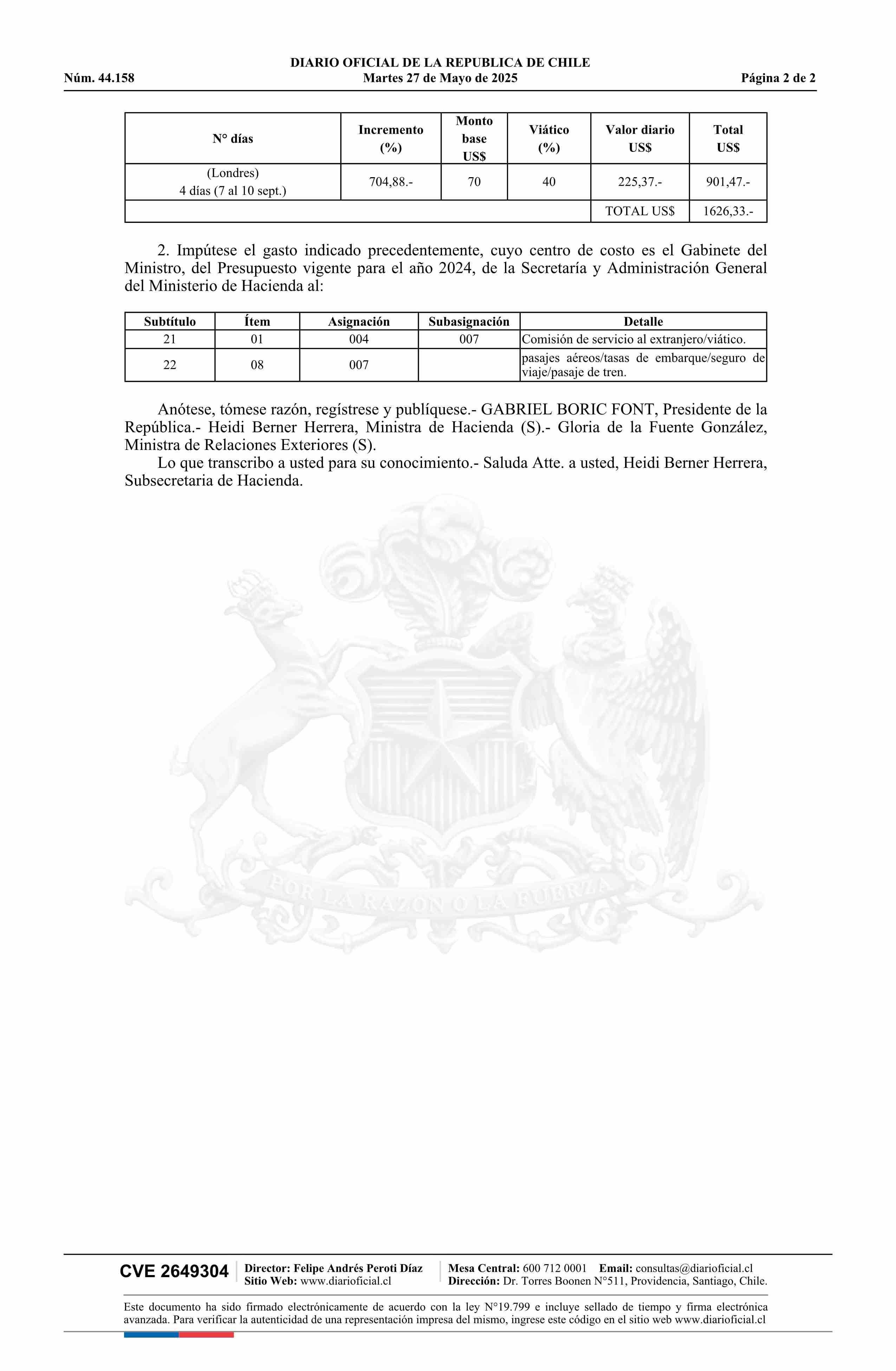 | Título: | Decreto número 1.028, de 2024.- Designa en comisión de servicio a don Mario Marcel Cullell, Ministro de Hacienda |