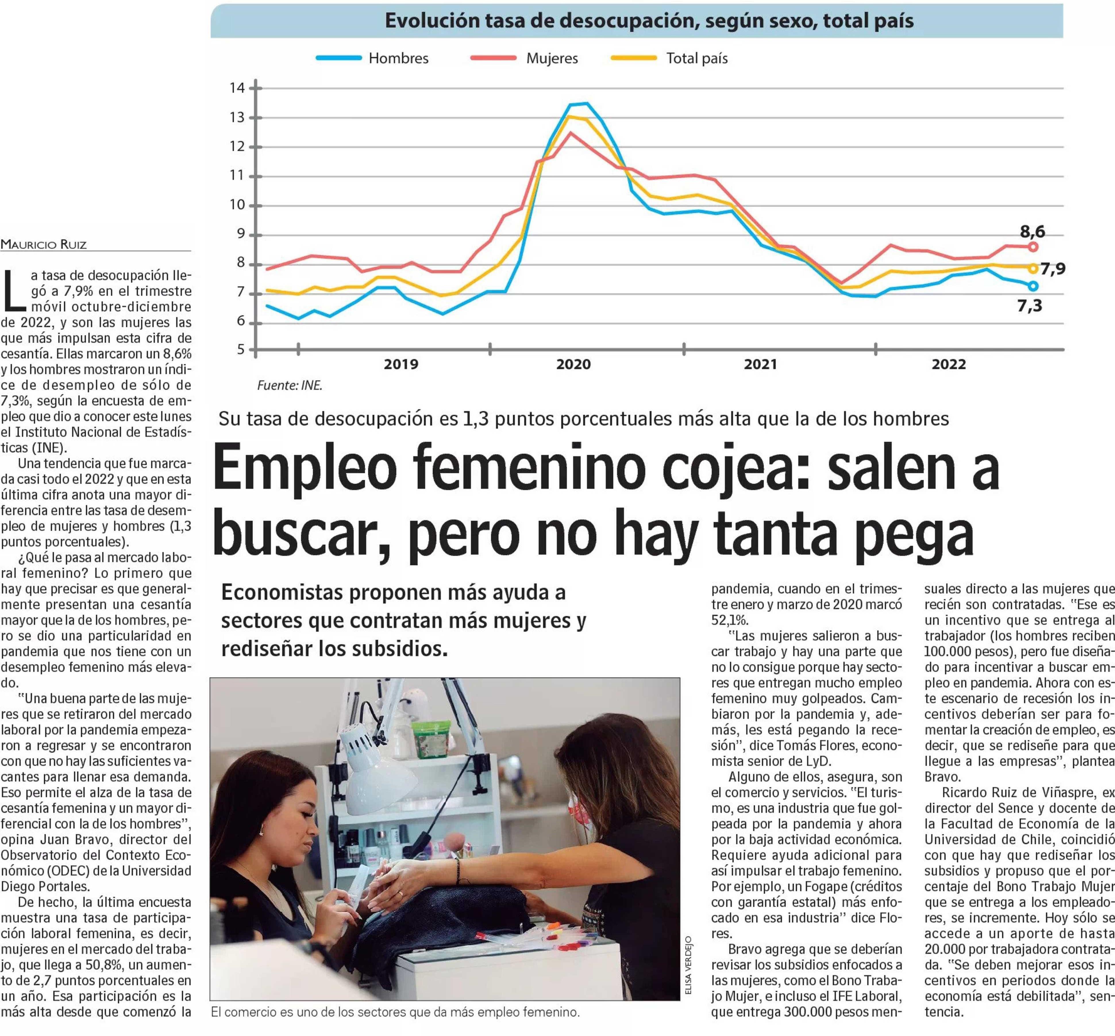 Empleo femenino cojea: salen a buscar, pero no hay tanta pega