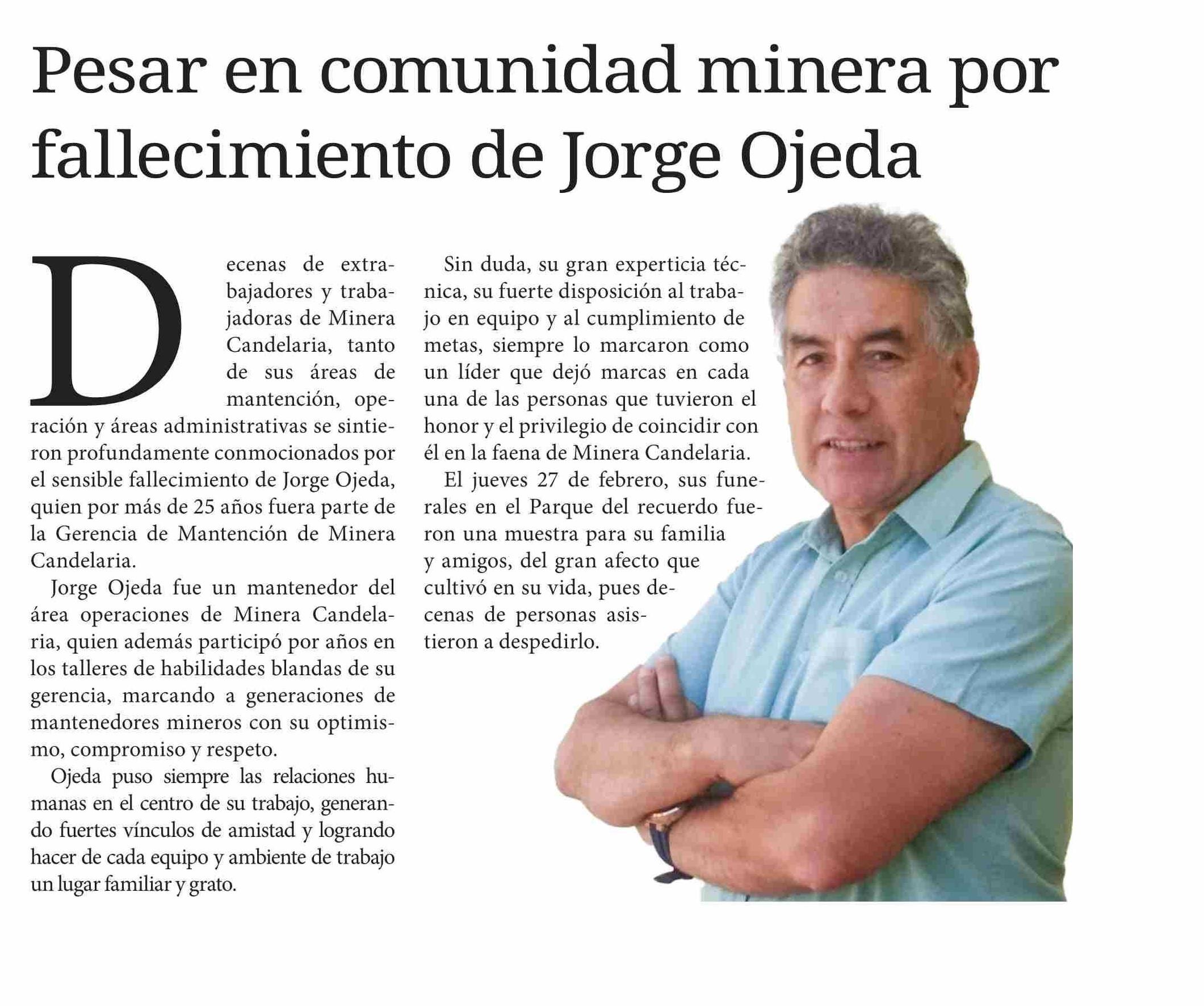 Pesar en comunidad minera por fallecimiento de Jorge Ojeda