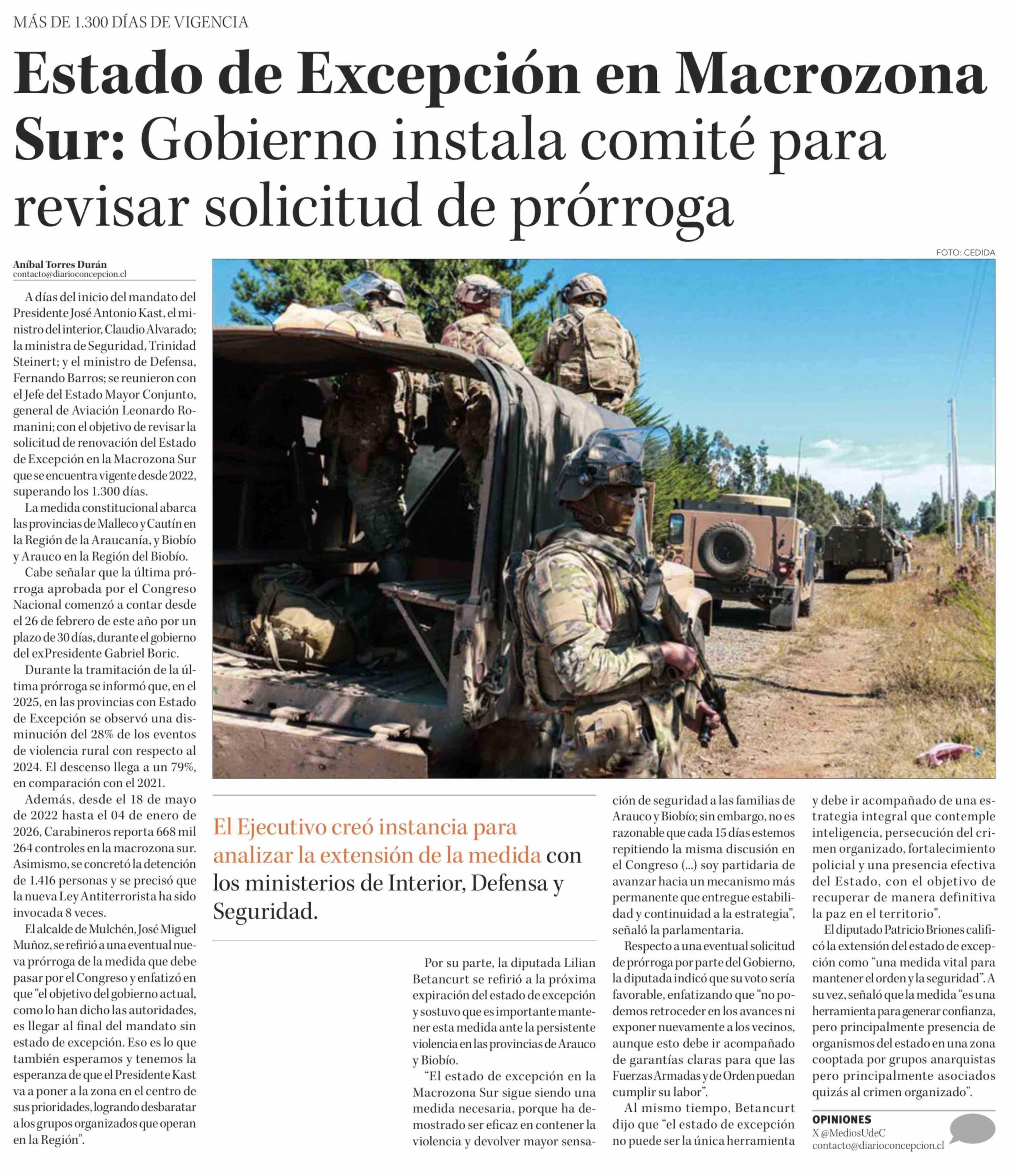 Estado de Excepción en Macrozona Sur: Gobierno instala comité para revisar solicitud de prórroga