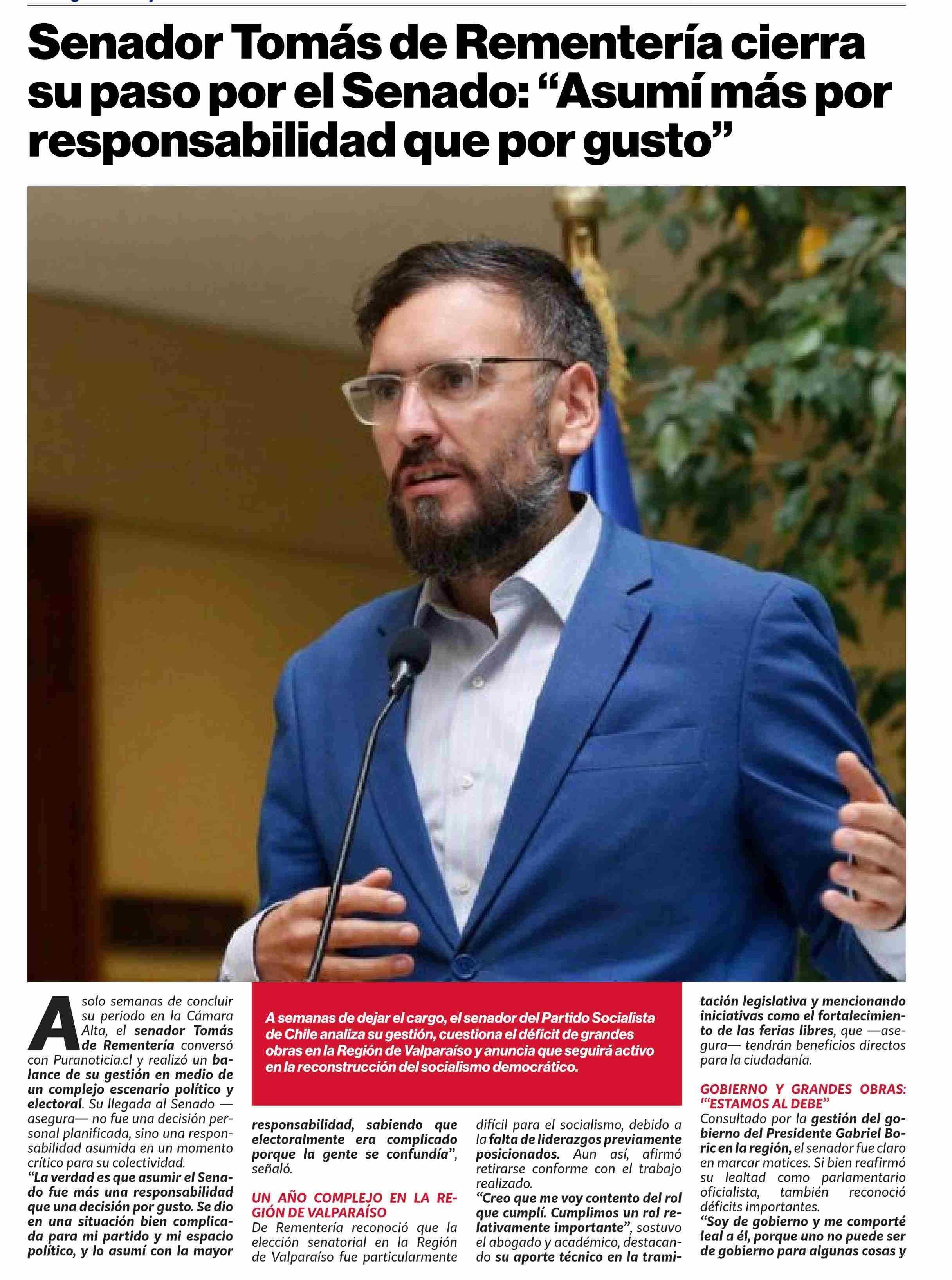 Senador Tomás de Rementería cierra su paso por el Senado: “Asumí más por responsabilidad que por gusto”