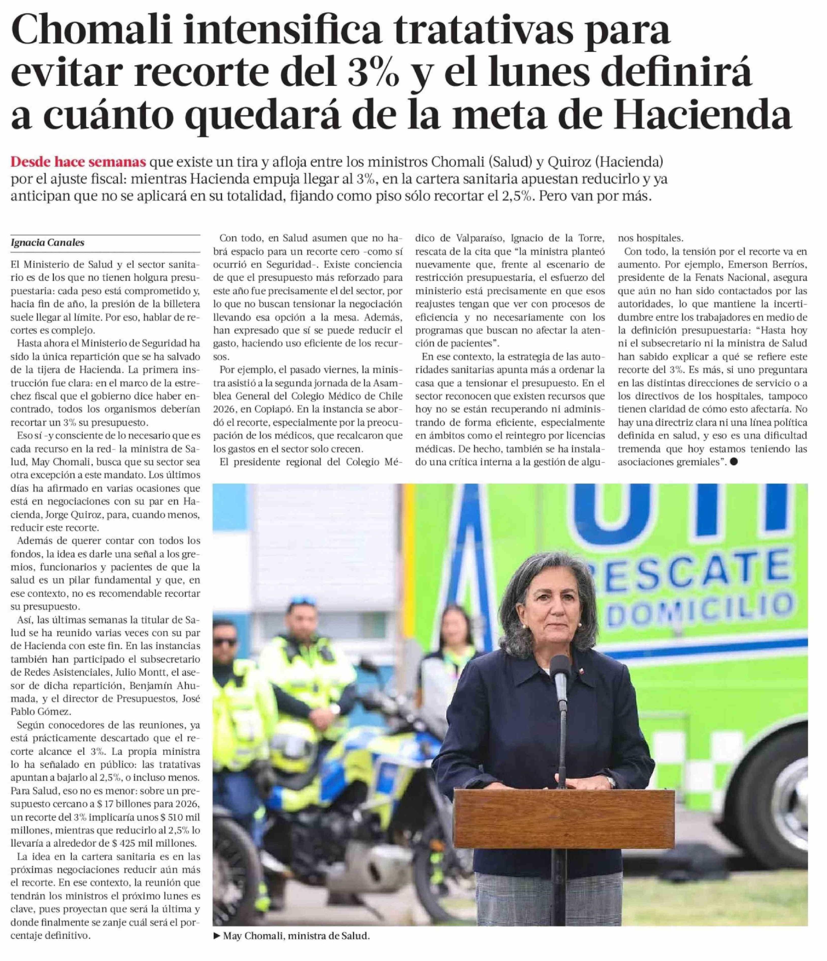 Chomali intensifica tratativas para evitar recorte del 3% y el lunes definirá a cuánto quedará de la meta de Hacienda