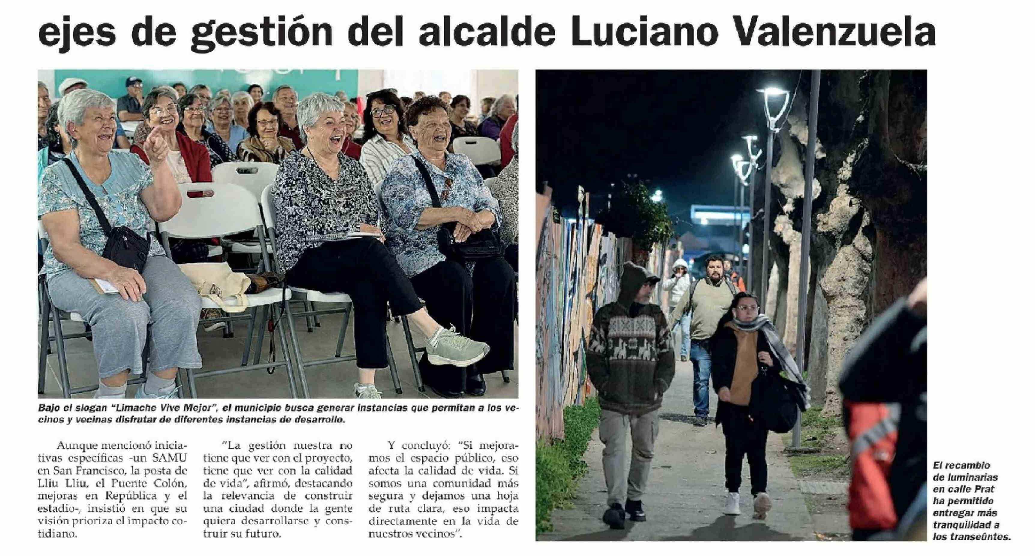 Eficiencia, espacios públicos y seguridad: los Eficiencia, espacios públicos y seguridad: los ejes de gestión del alcalde Luciano Valenzuela