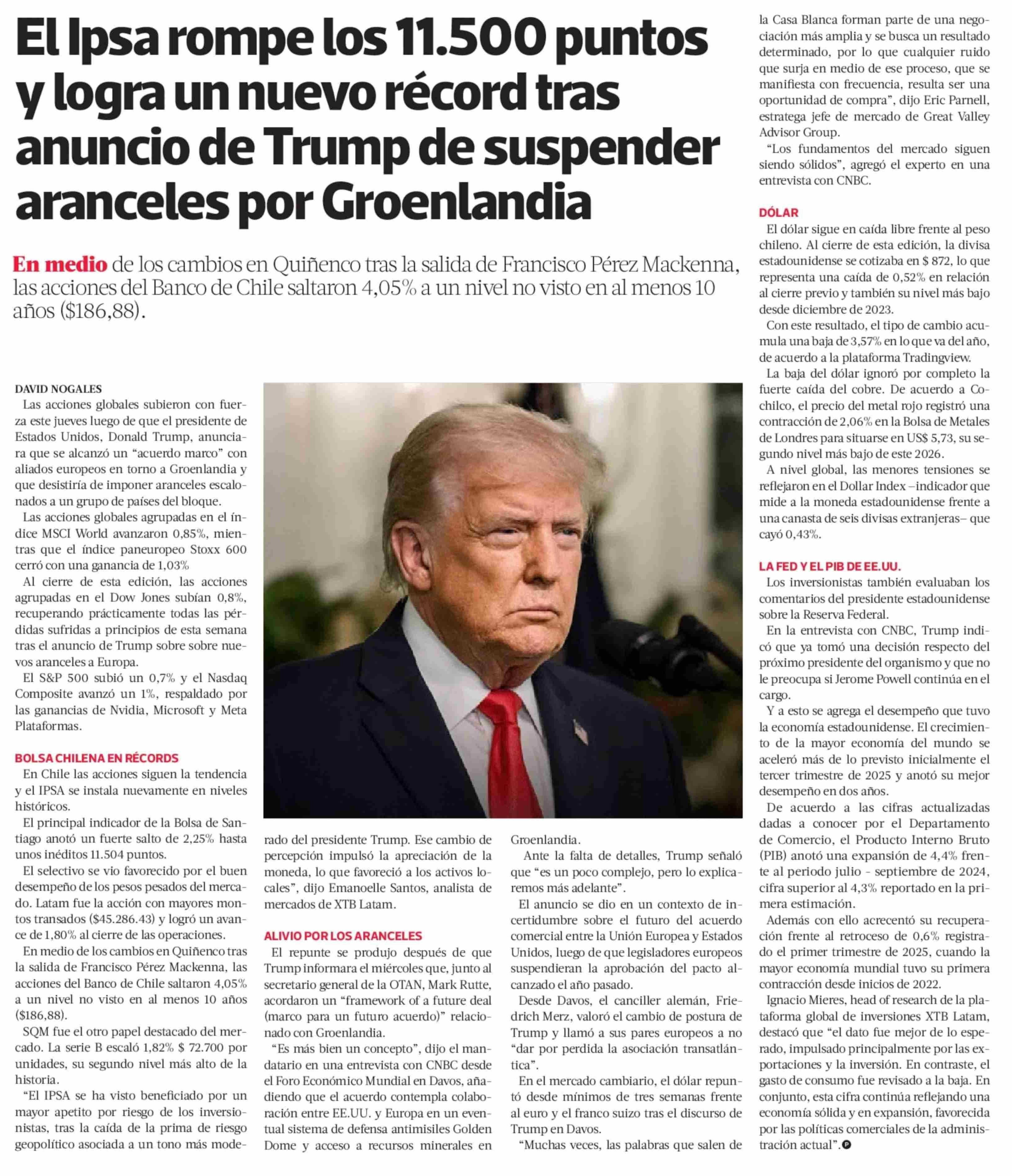 El Ipsa rompe los 11.500 puntos y logra un nuevo récord tras anuncio de Trump de suspender aranceles por Groenlandia