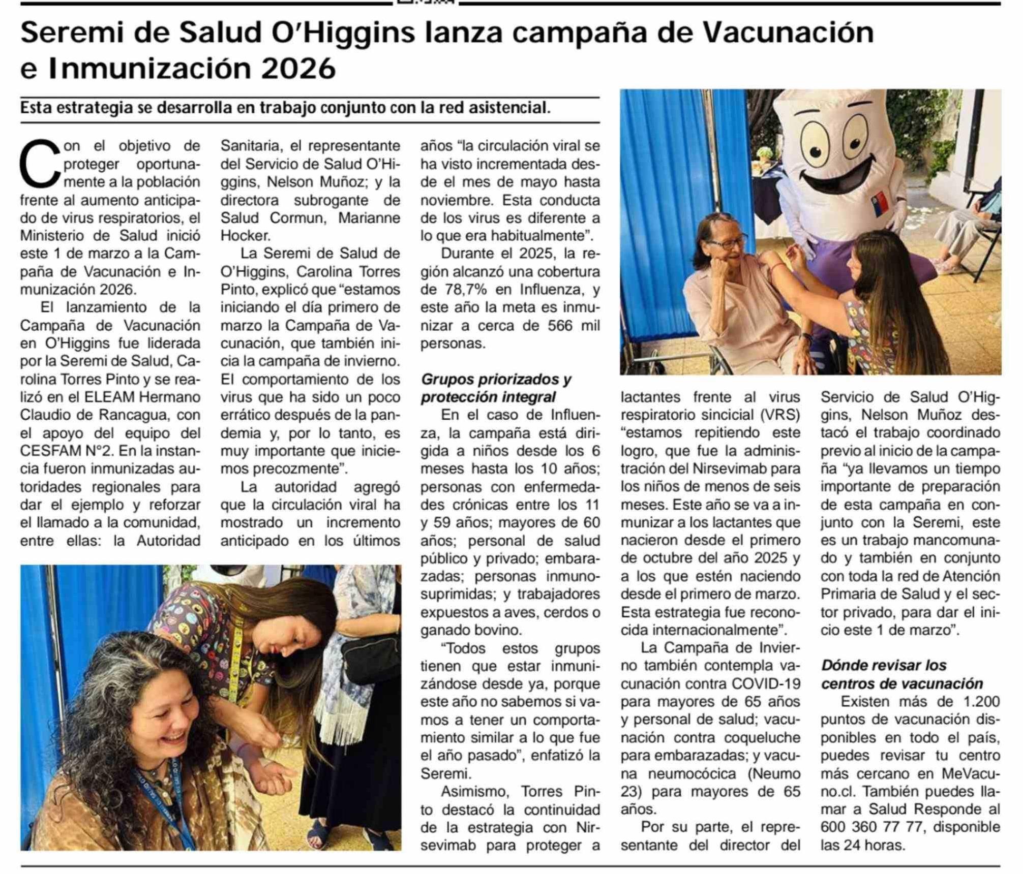 Seremi de Salud O'Higgins lanza campaña de Vacunación e Inmunización 2026