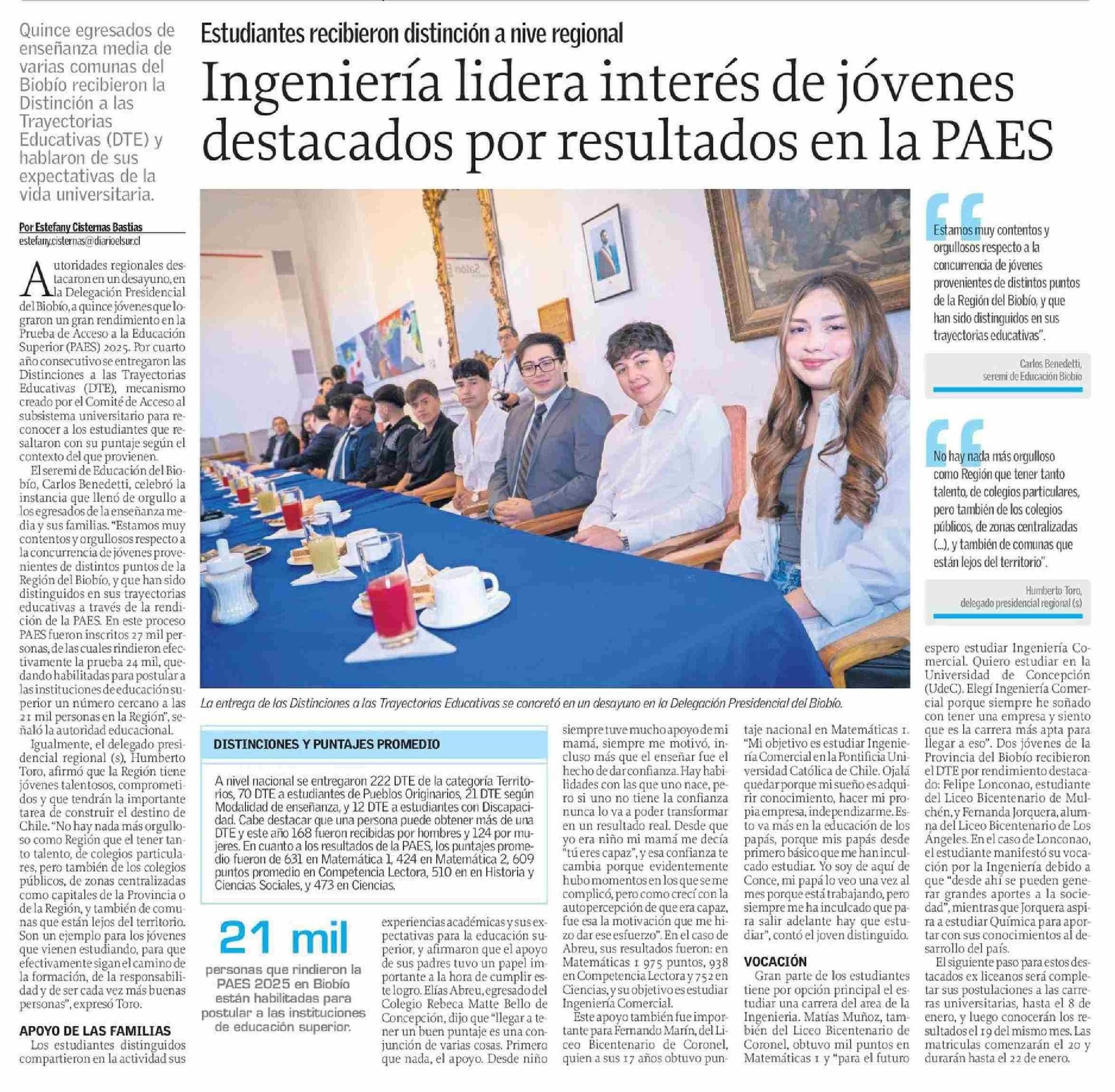 Título: Ingeniería lidera interés de jóvenes destacados por resultados en la PAES