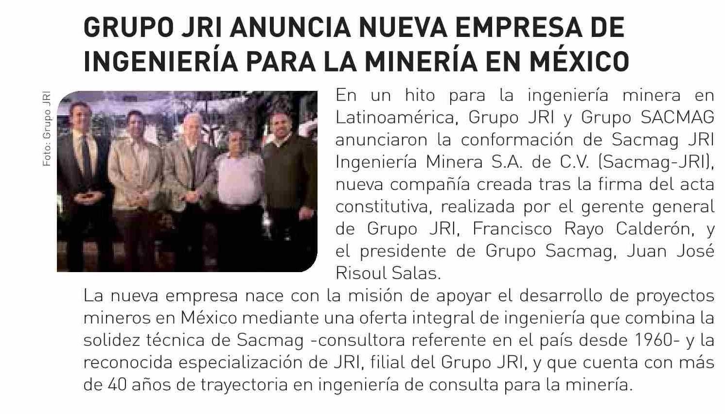 GRUPO JRI ANUNCIA NUEVA EMPRESA DE INGENIERÍA PARA LA MINERÍA EN MÉXICO