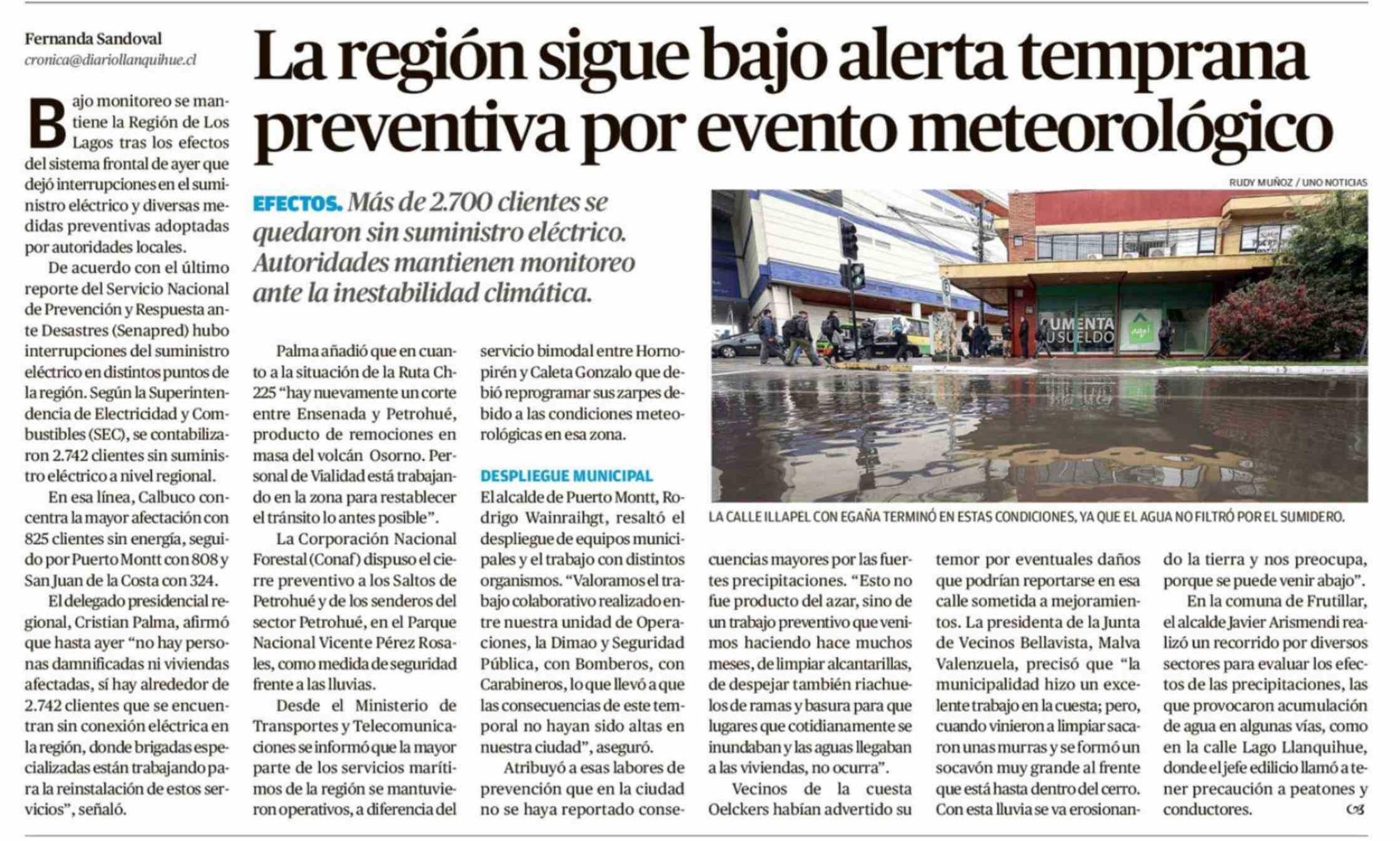 La región sigue bajo alerta temprana preventiva por evento meteorológico