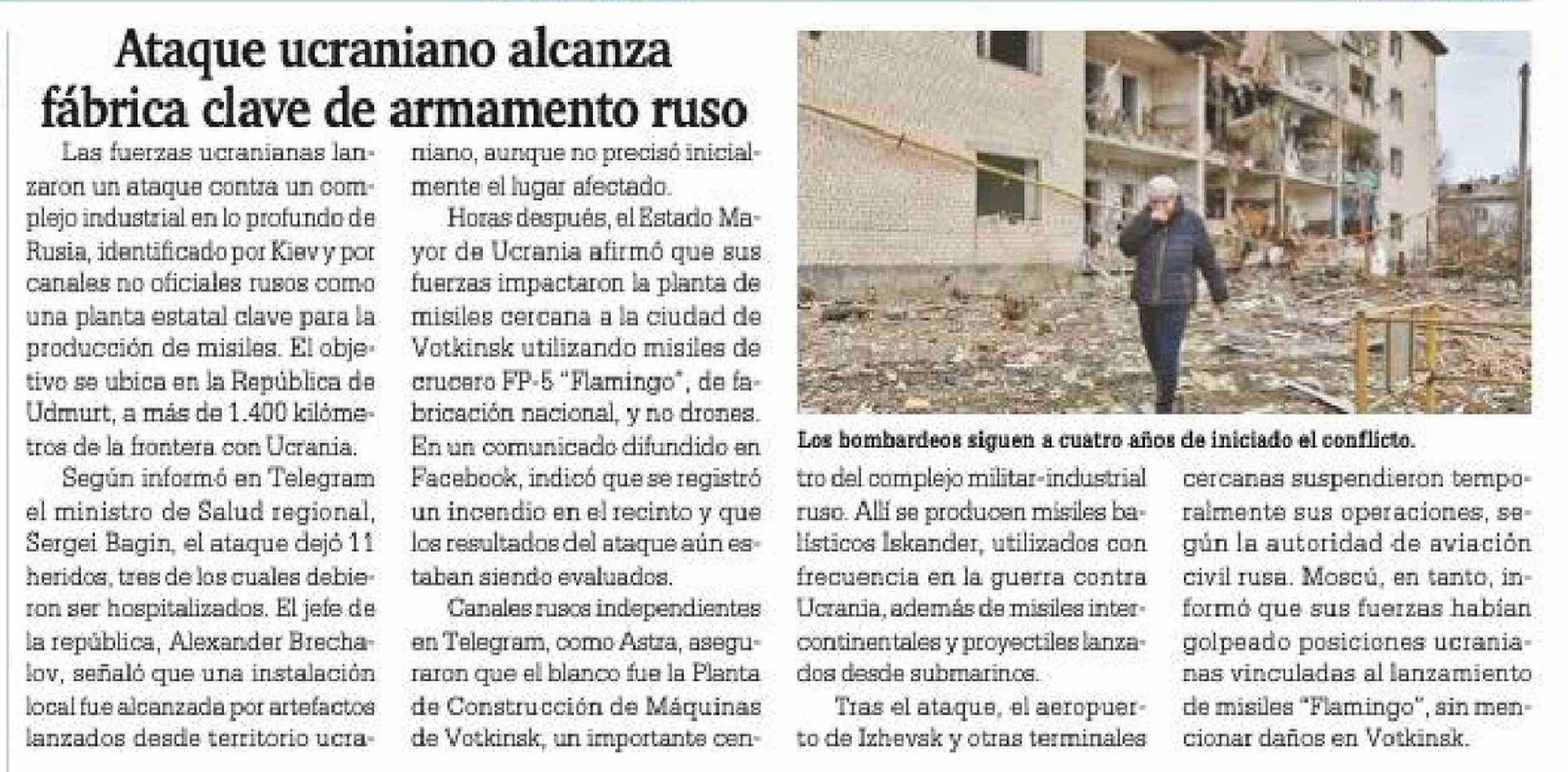 Título: Ataque ucraniano alcanza fábrica clave de armamento ruso