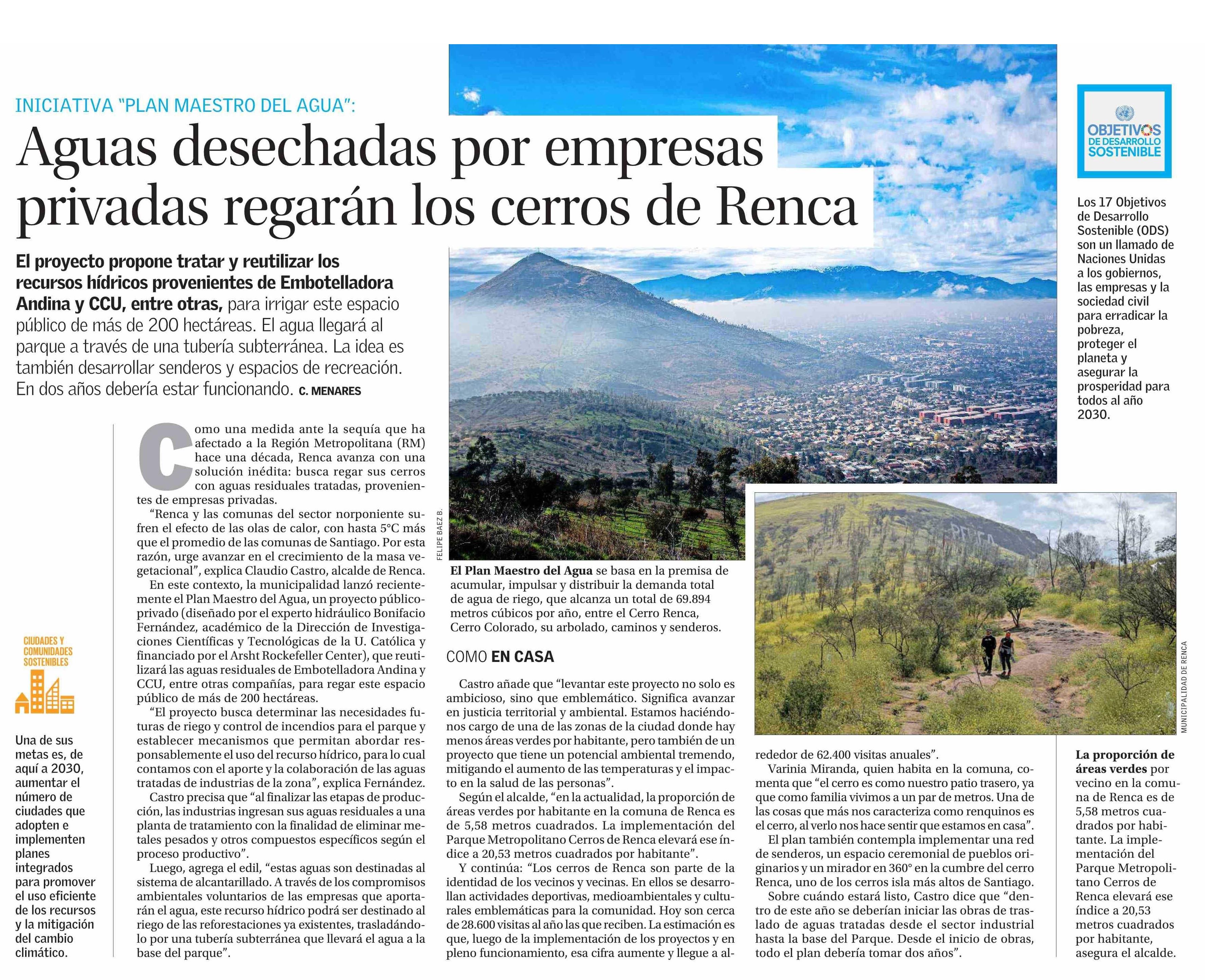 Aguas desechadas por empresas privadas regarán los cerros de Renca