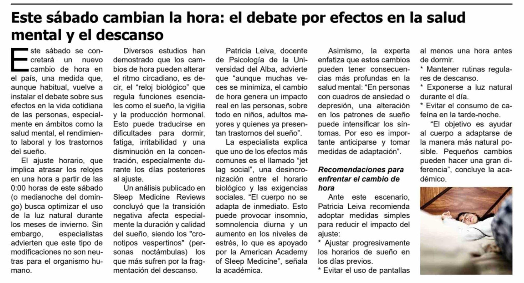 Título: Este sábado cambian la hora: el debate por efectos en la salud mental y el descanso