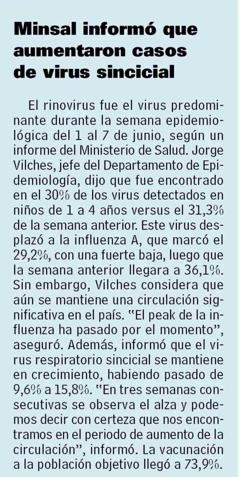 Minsal informó que aumentaron casos de virus sincicial