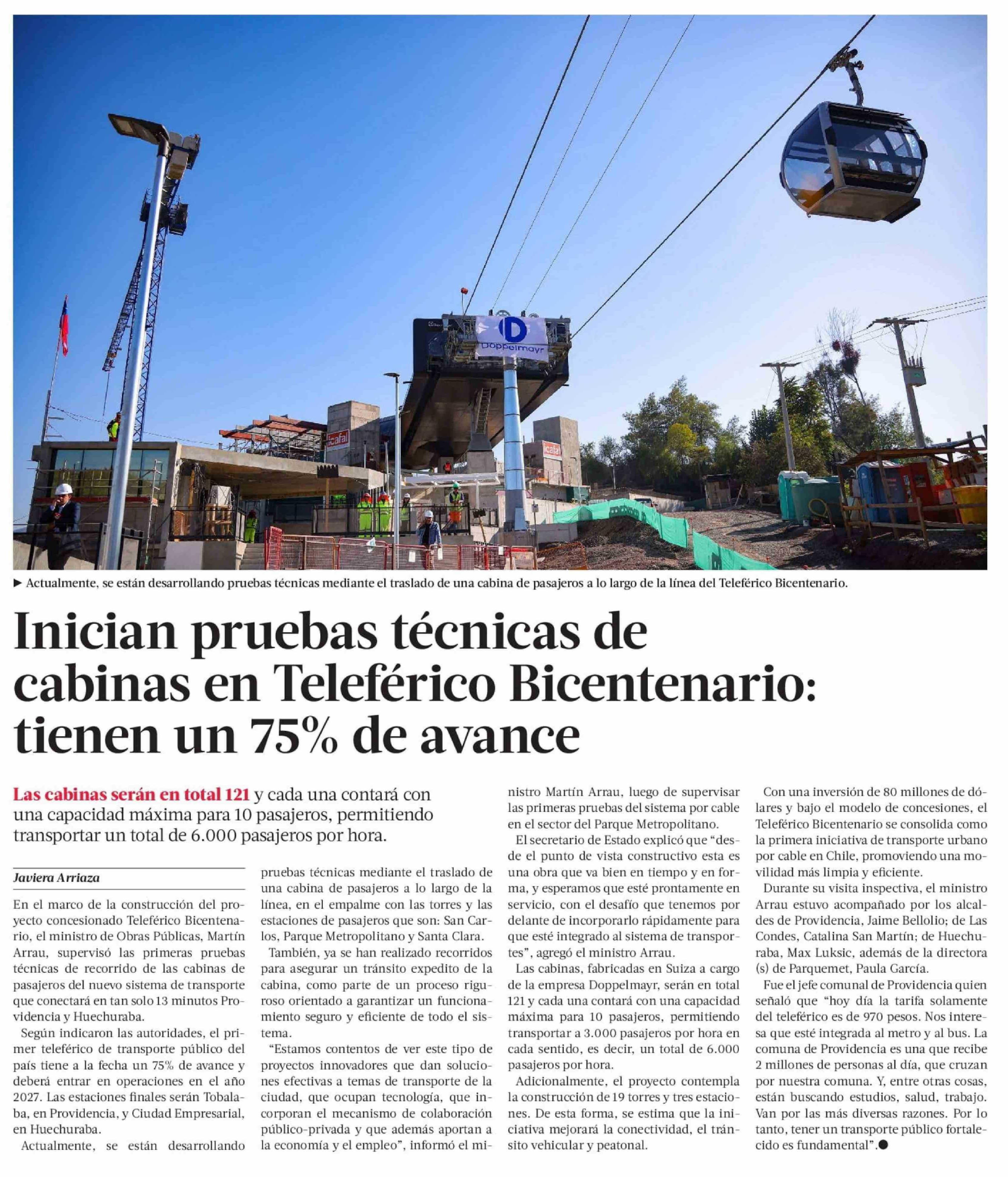 Inician pruebas técnicas de cabinas en Teleférico Bicentenario: tienen un 75% de avance