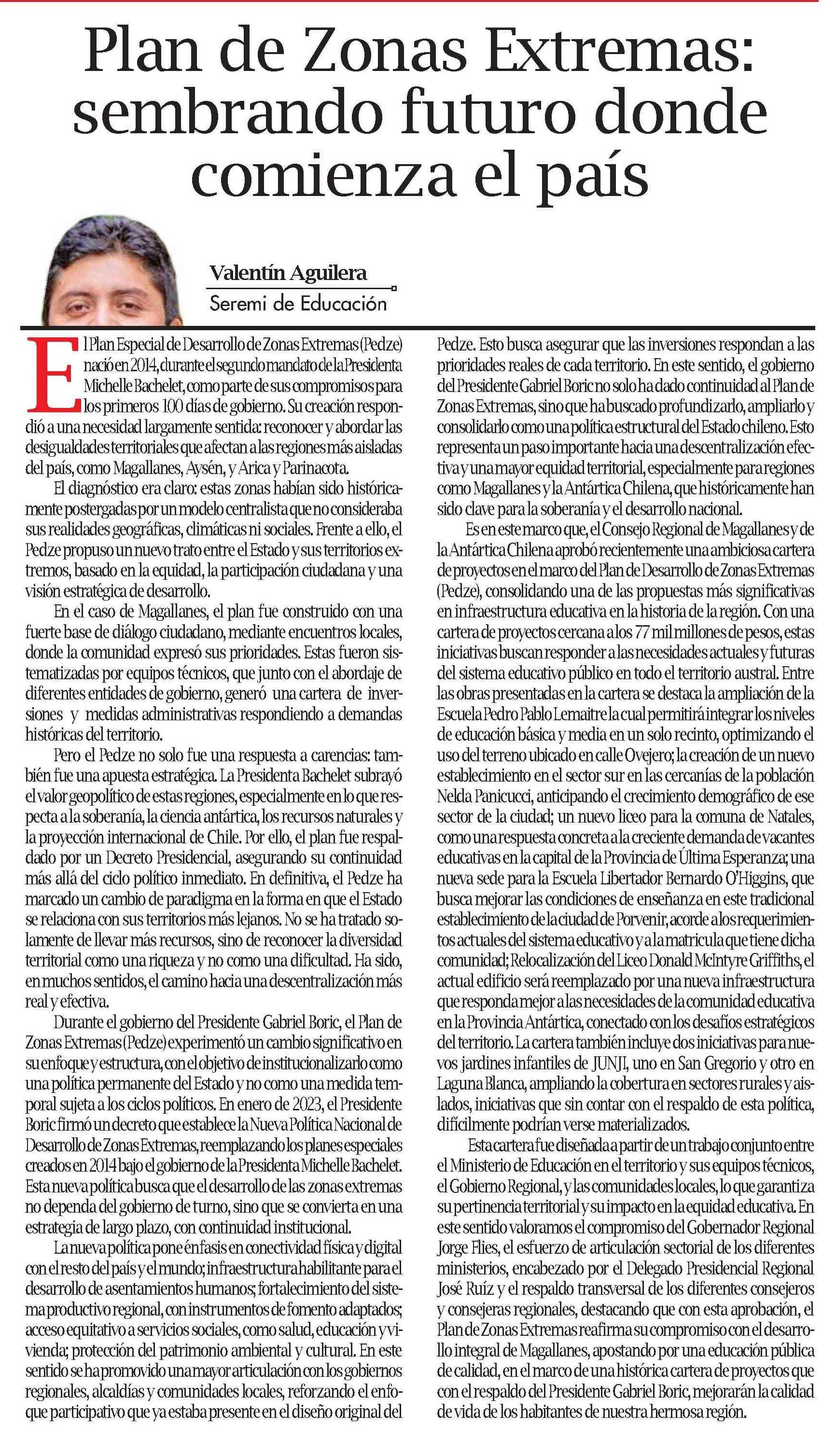 Columnas de Opinión: Plan de Zonas Extremas: sembrando futuro donde comienza el país