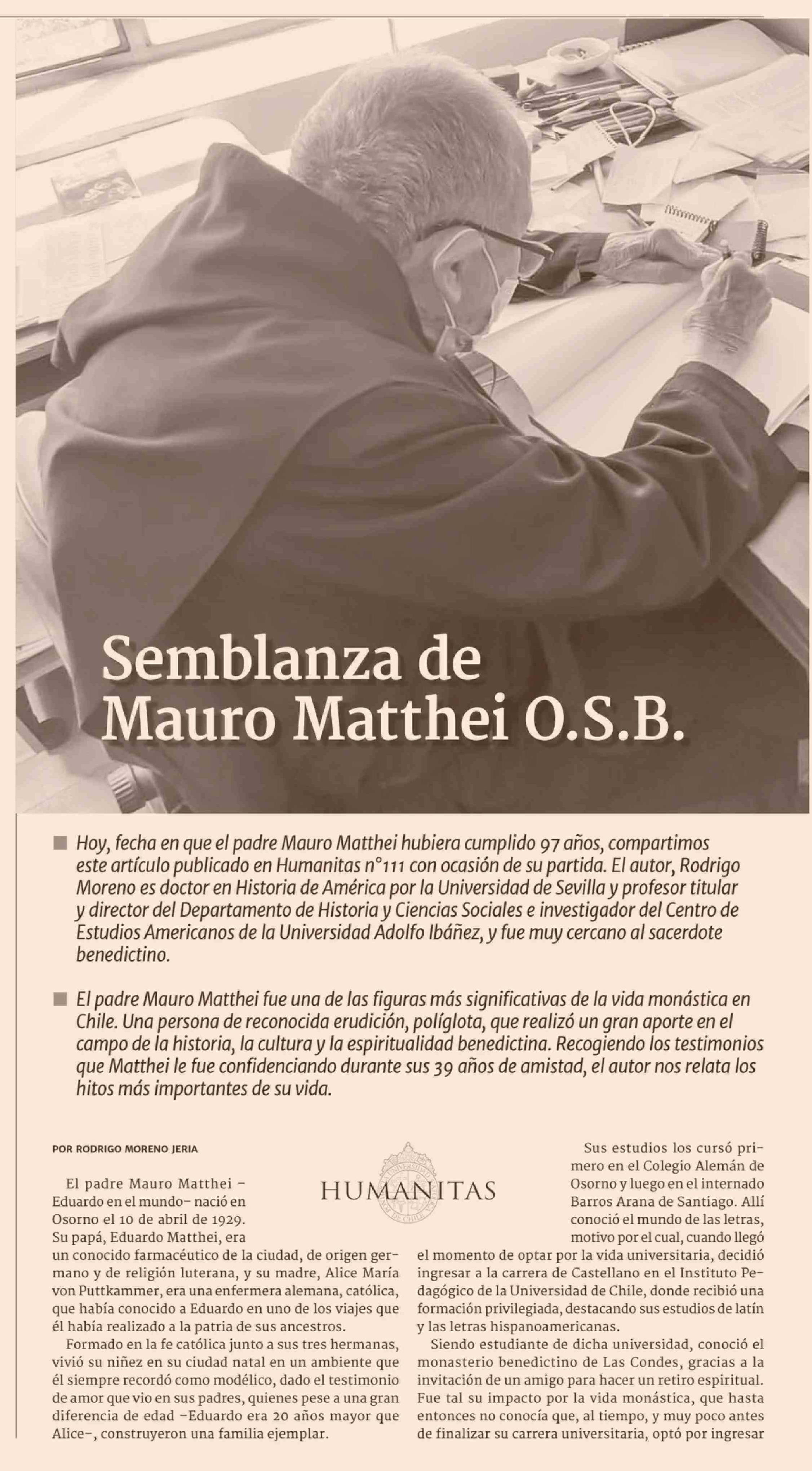 Semblanza de Mauro Matthei O.S.B.