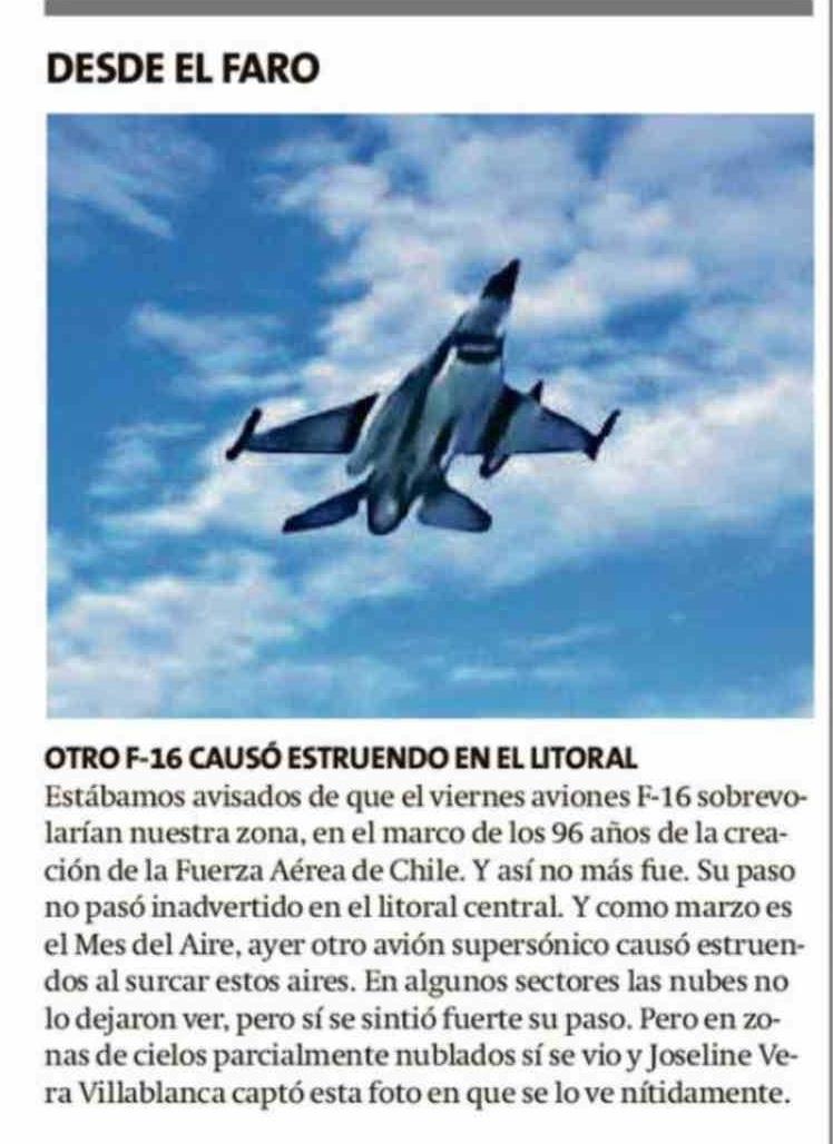 OTRO F-16 CAUSÓ ESTRUENDO EN EL LITORAL