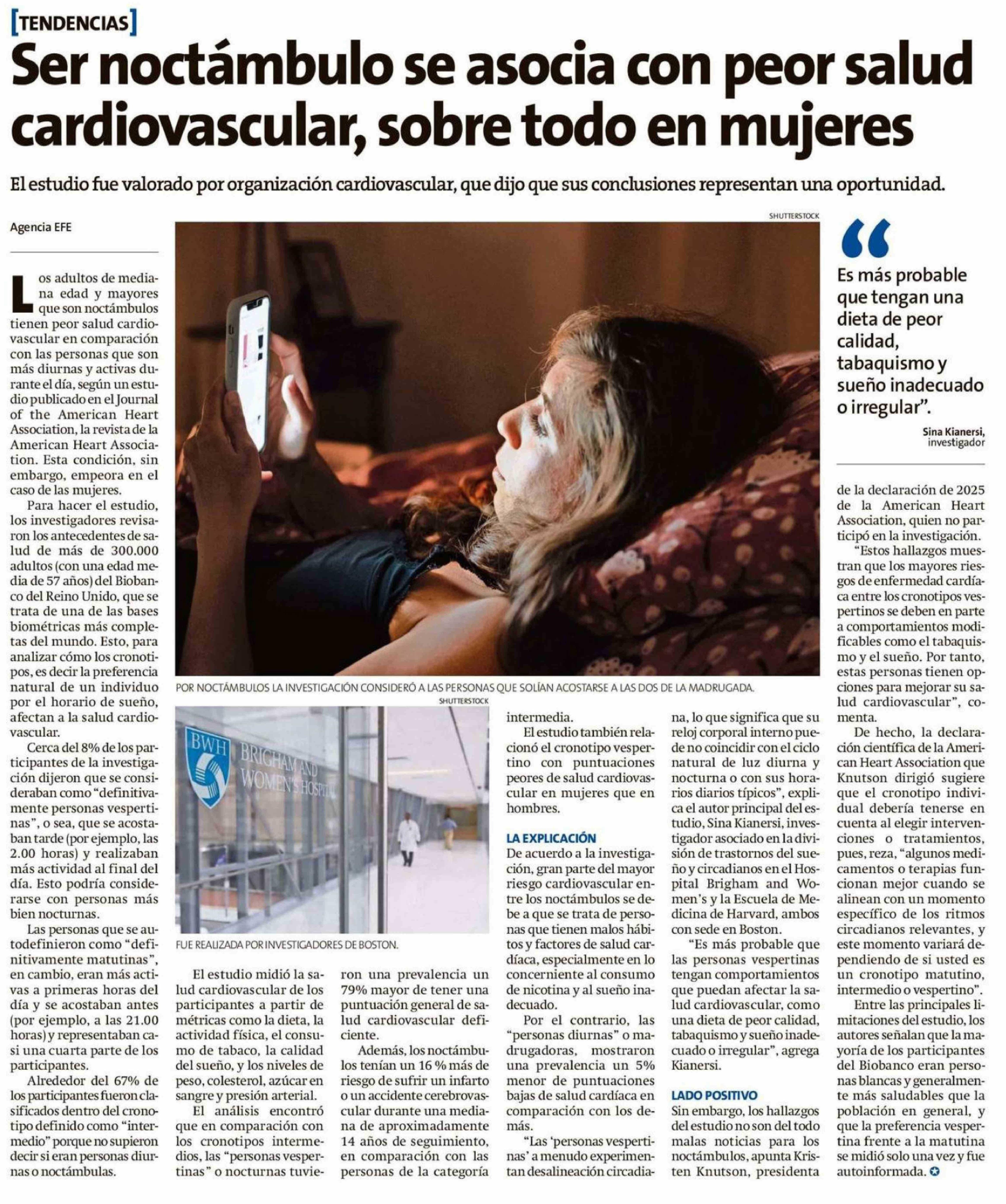 Ser noctámbulo se asocia con peor salud cardiovascular, sobre todo en mujeres