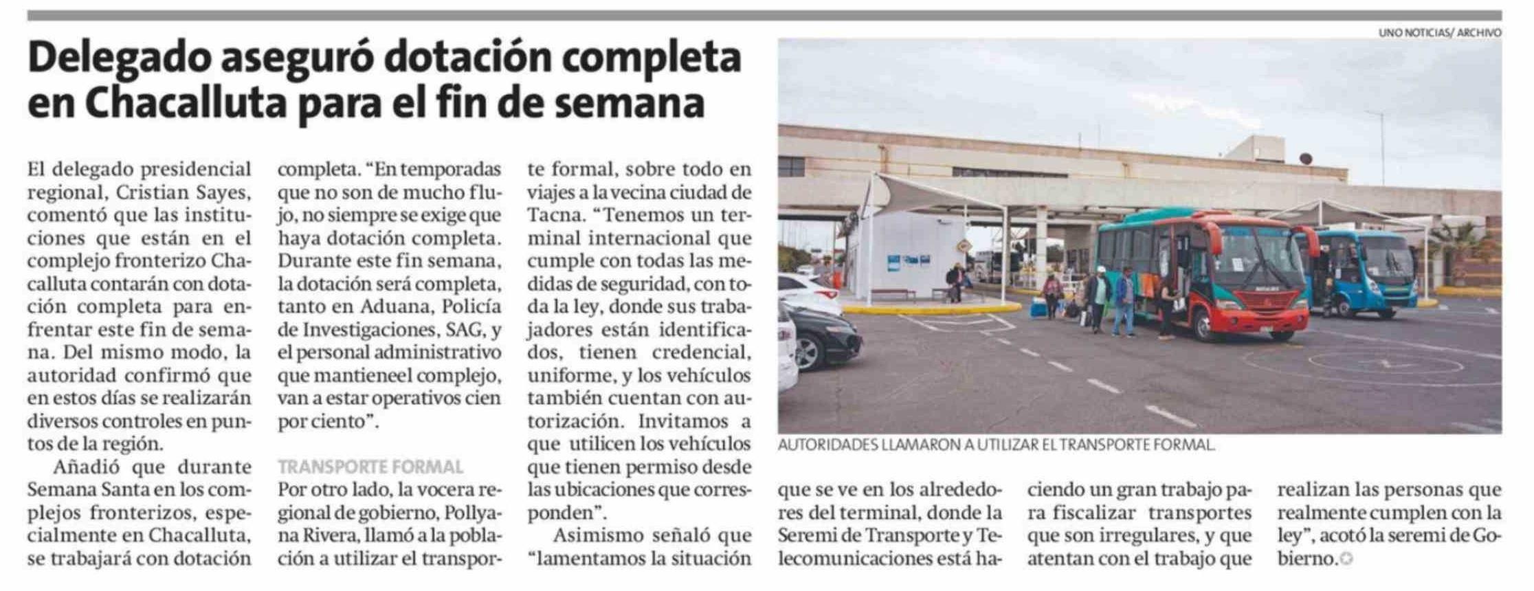 Delegado aseguró dotación completa en Chacalluta para el fin de semana